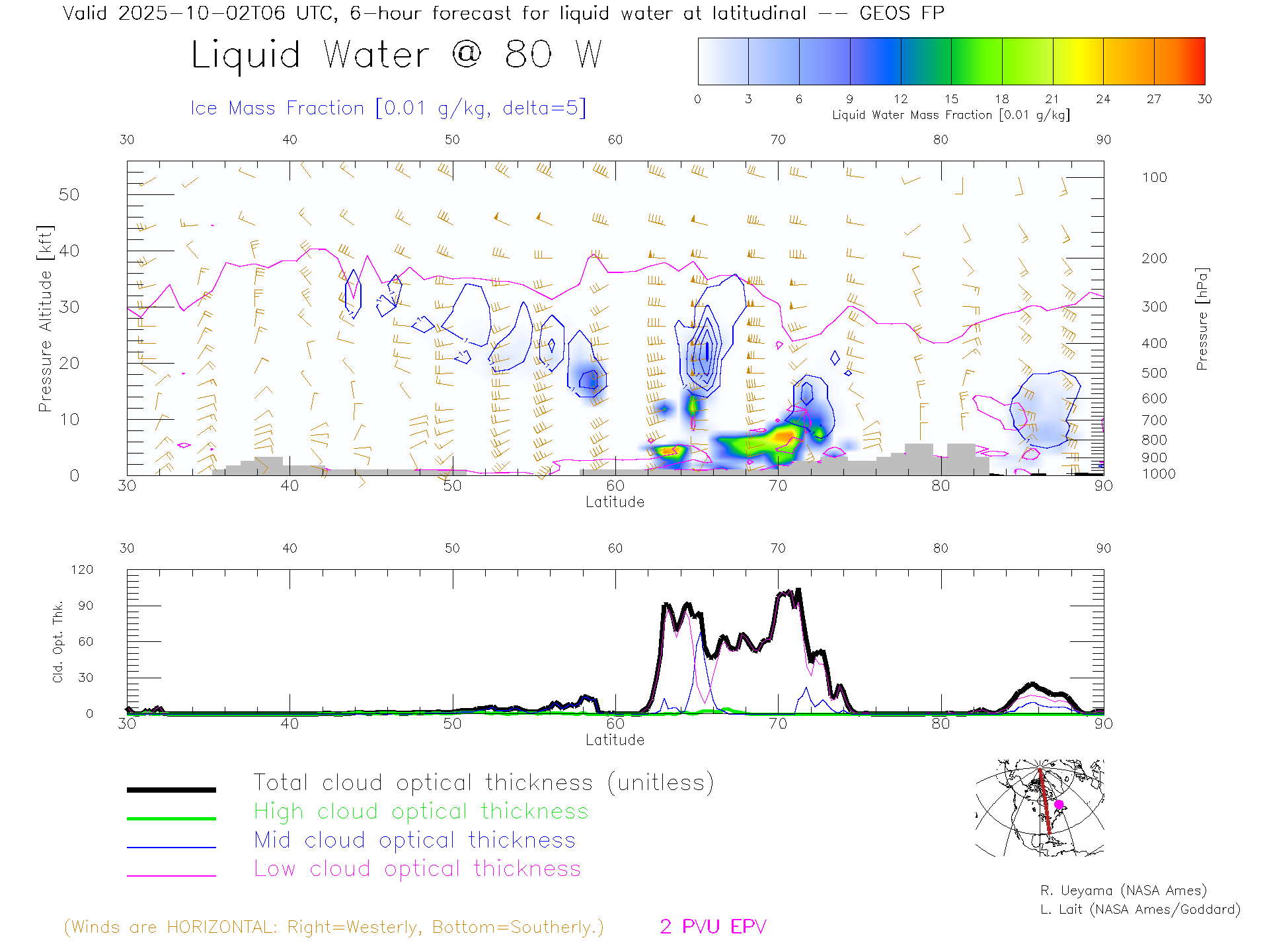 GEOS Forecast Cloud Water Content X-Section (80 W)