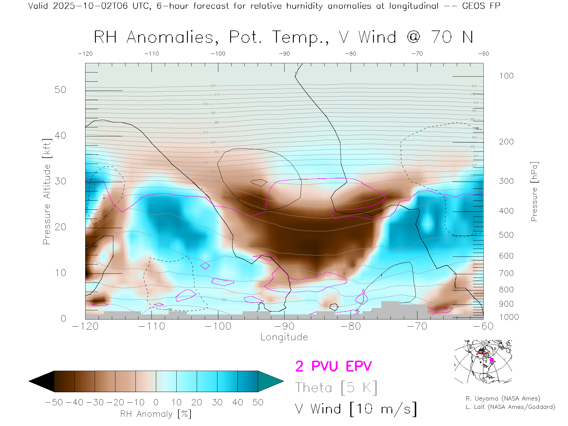 GEOS Forecast Rel. Hum. X-Section (70 N)