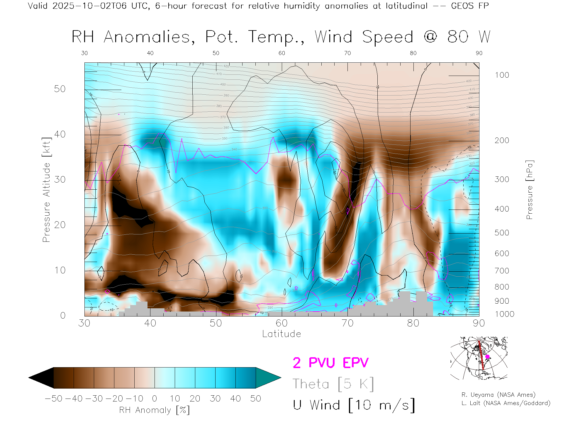 GEOS Forecast Rel. Hum. X-Section (80 W)