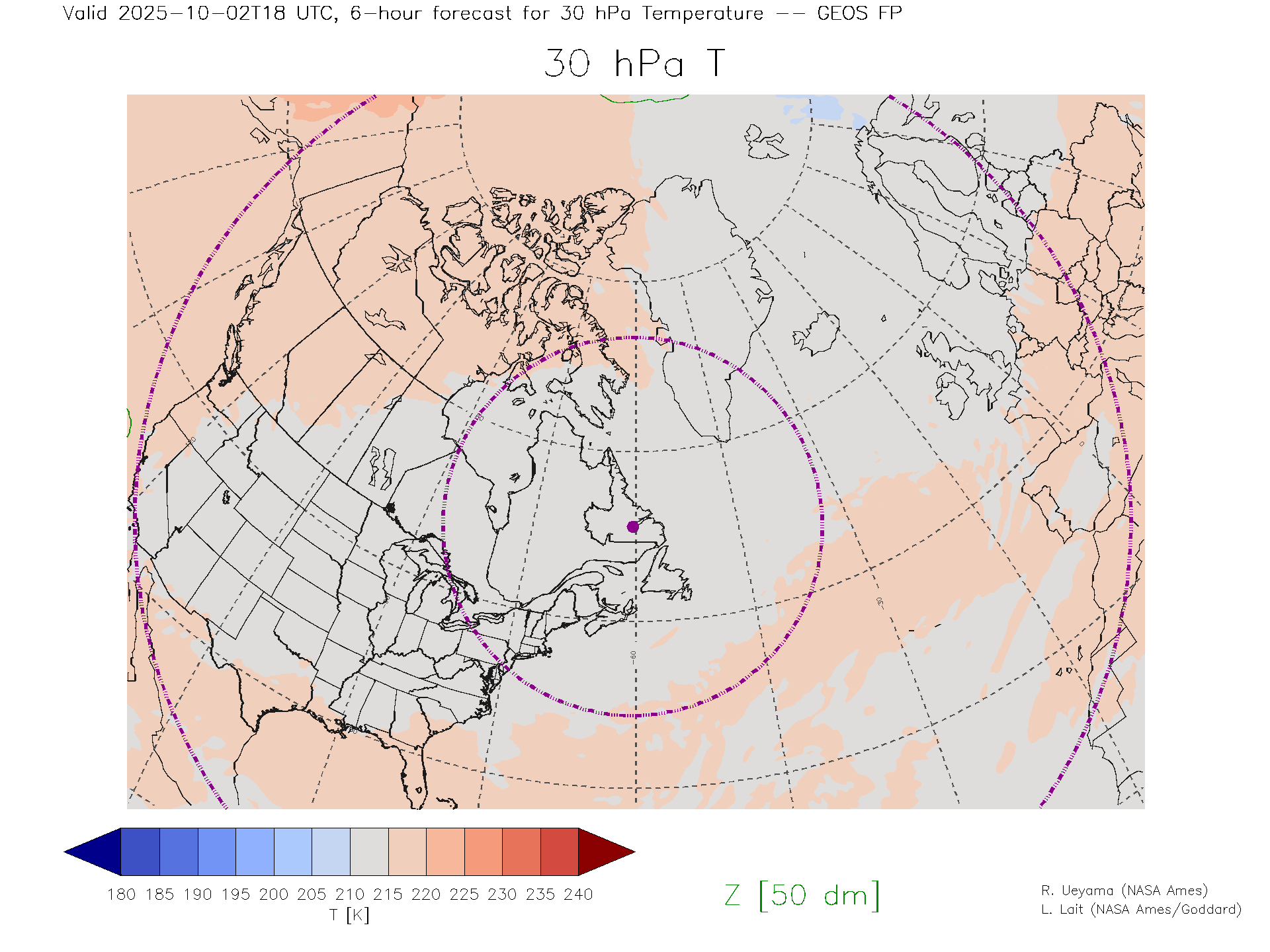 GEOS Forecast 30 hPa Temp.