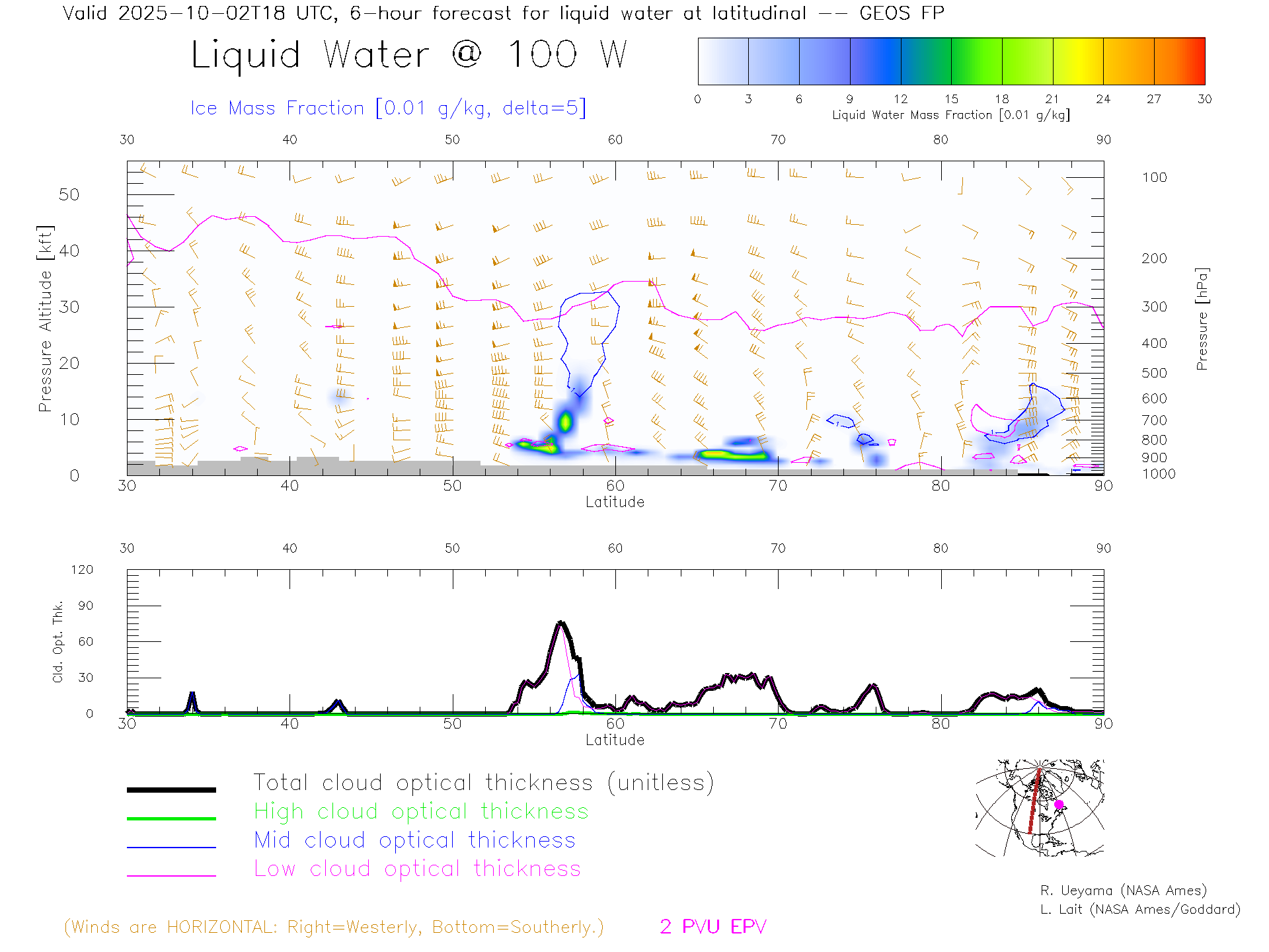 GEOS Forecast Cloud Water Content X-Section (100 W)