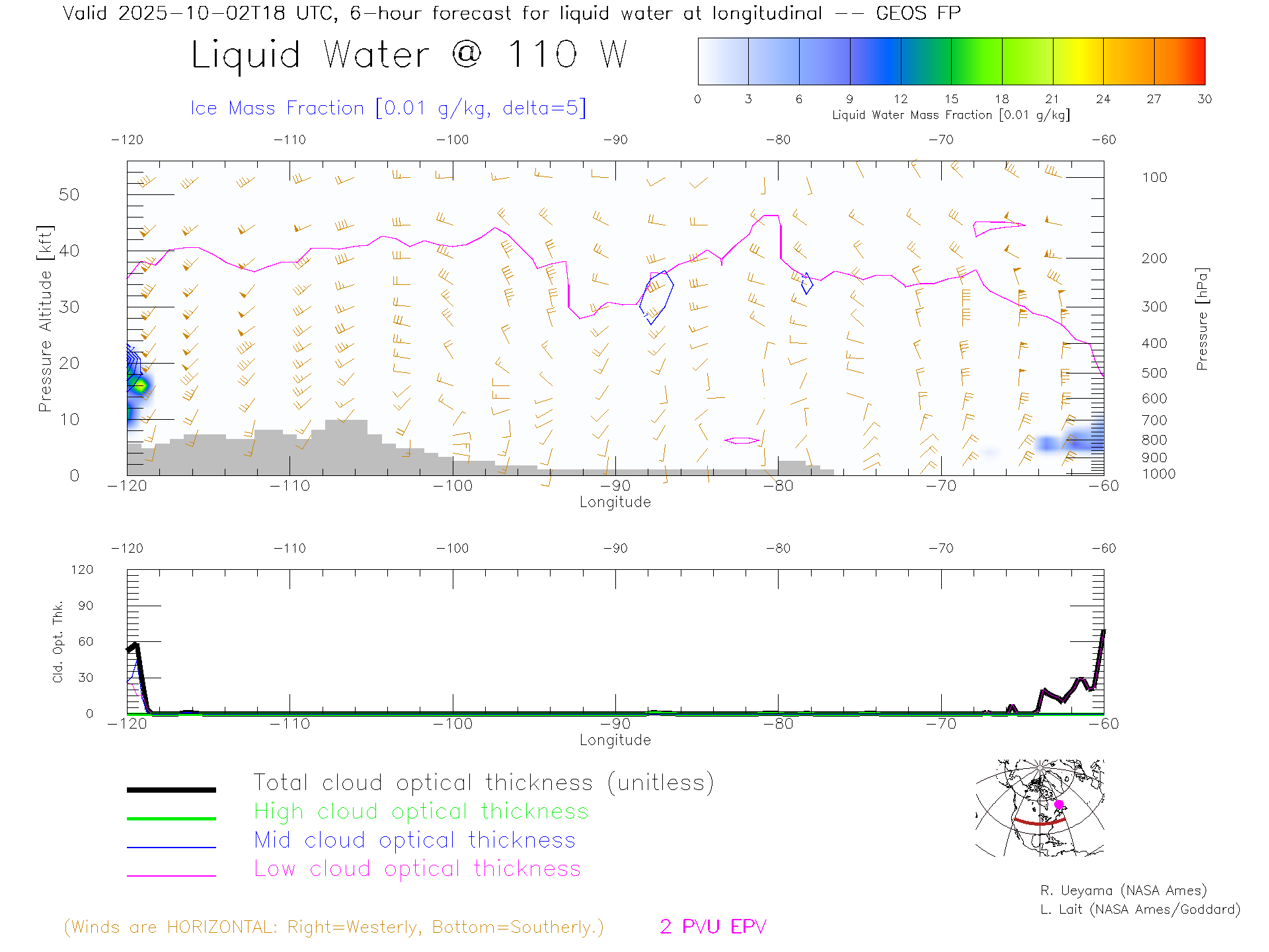 GEOS Forecast Cloud Water Content X-Section (40 N)