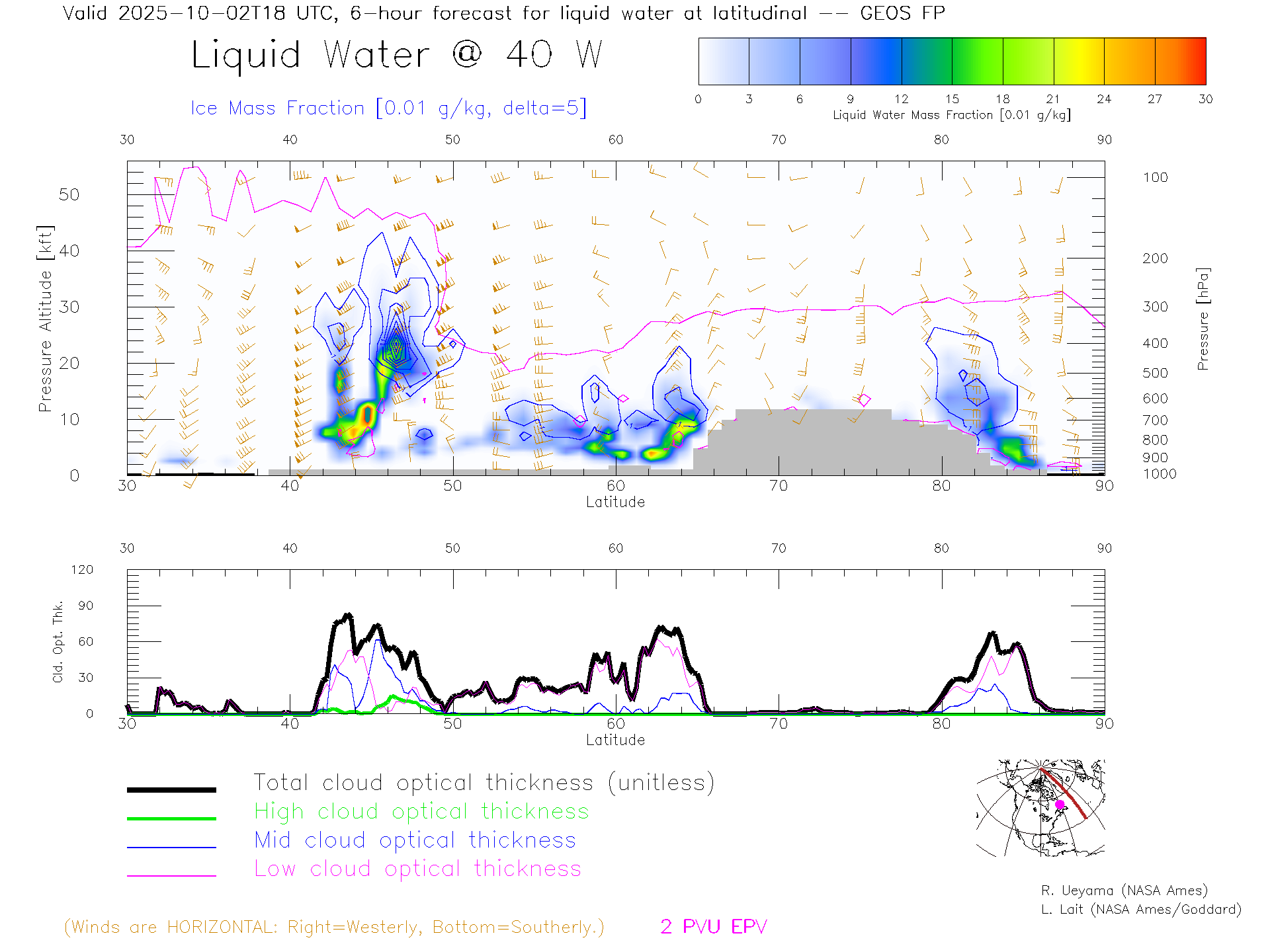 GEOS Forecast Cloud Water Content X-Section (40 W)