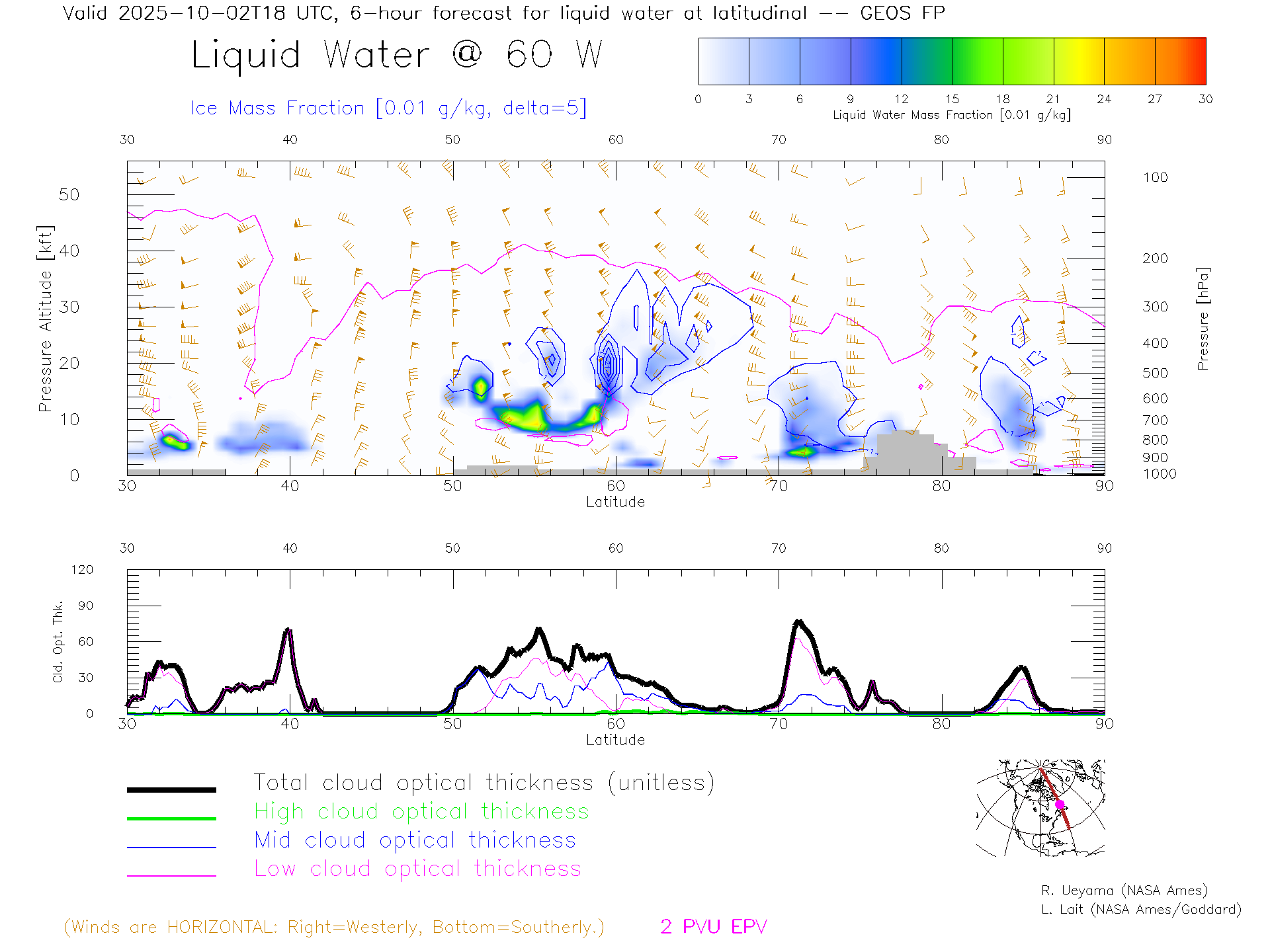 GEOS Forecast Cloud Water Content X-Section (60 W)