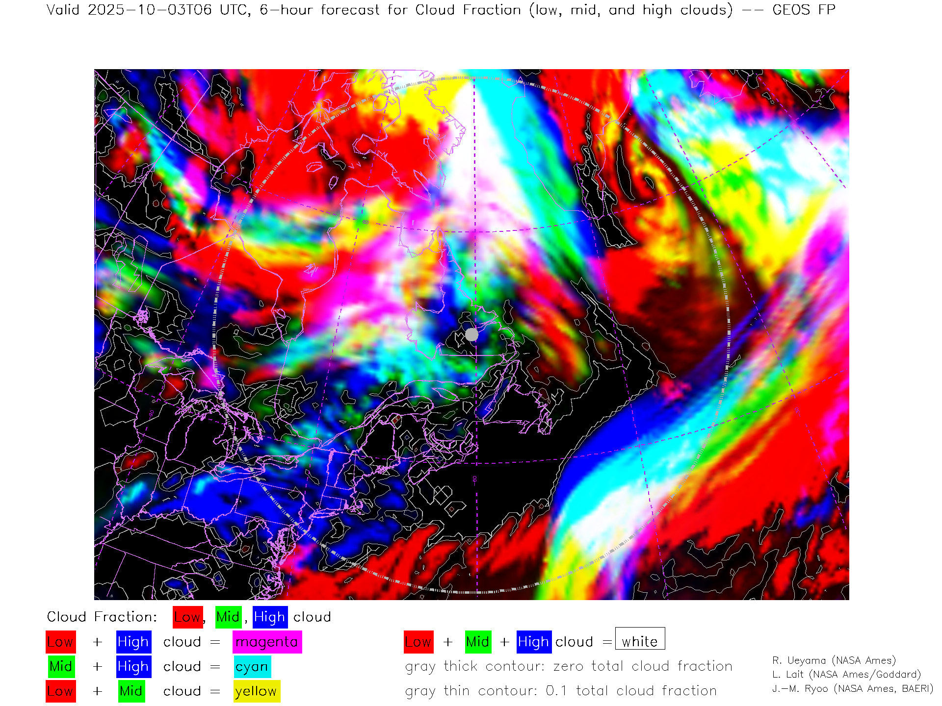 GEOS Forecast Low-, Mid- and High-level Cloud Fraction