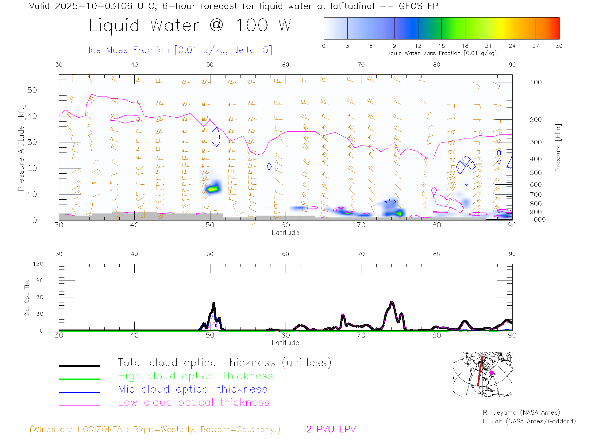 GEOS Forecast Cloud Water Content X-Section (100 W)