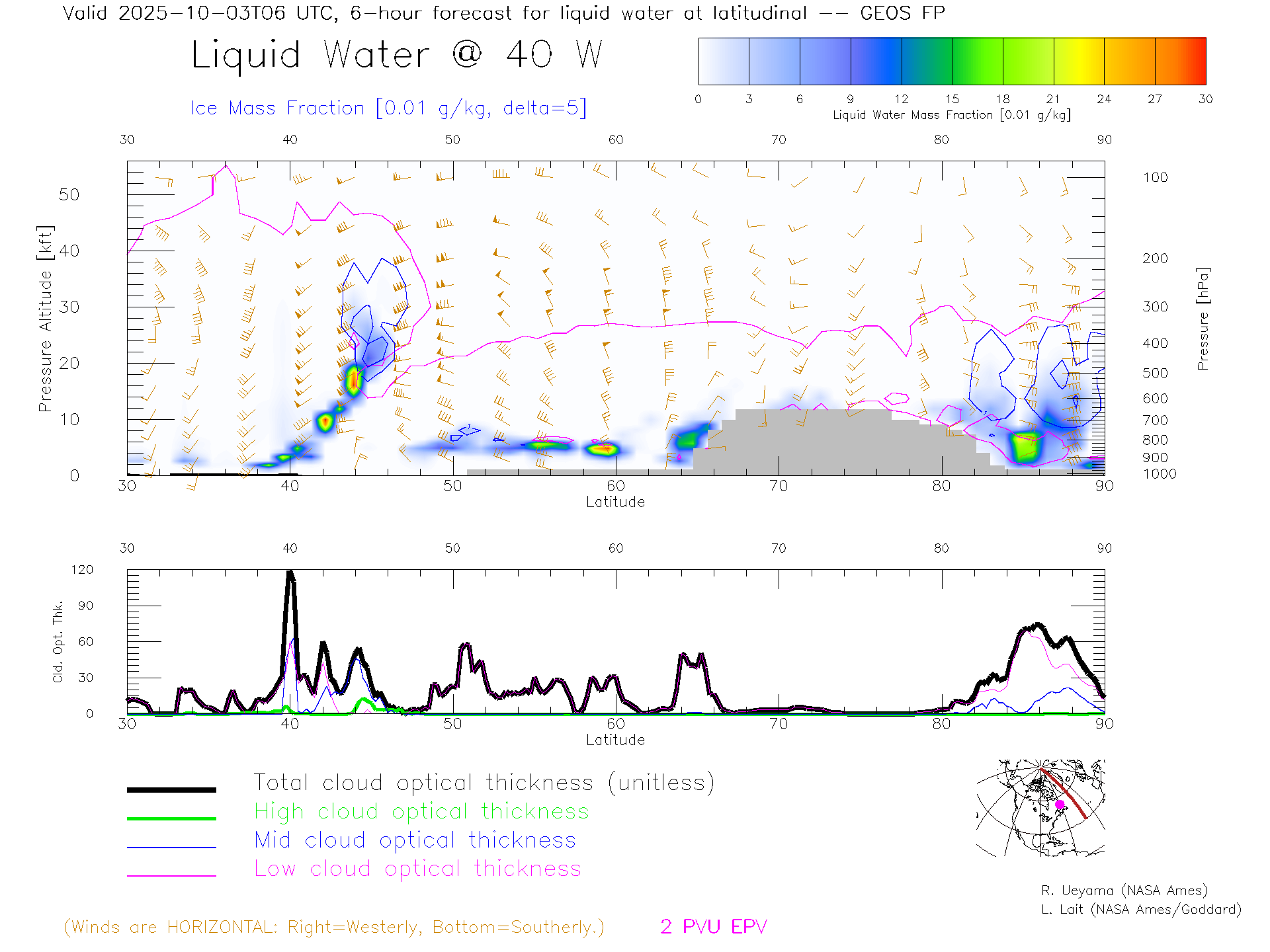 GEOS Forecast Cloud Water Content X-Section (40 W)