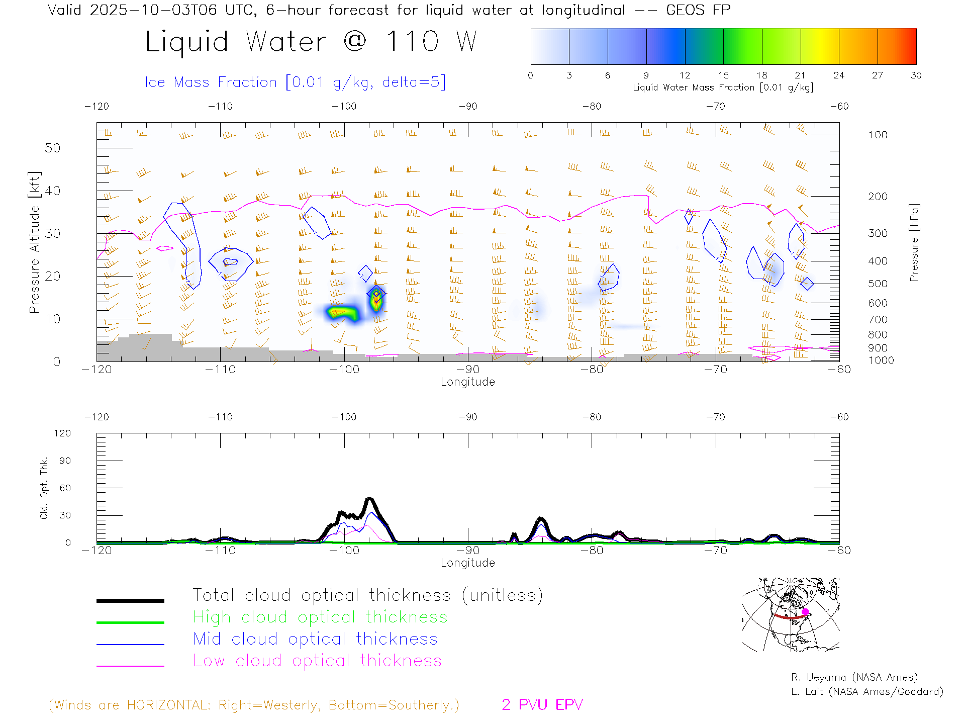 GEOS Forecast Cloud Water Content X-Section (50 N)