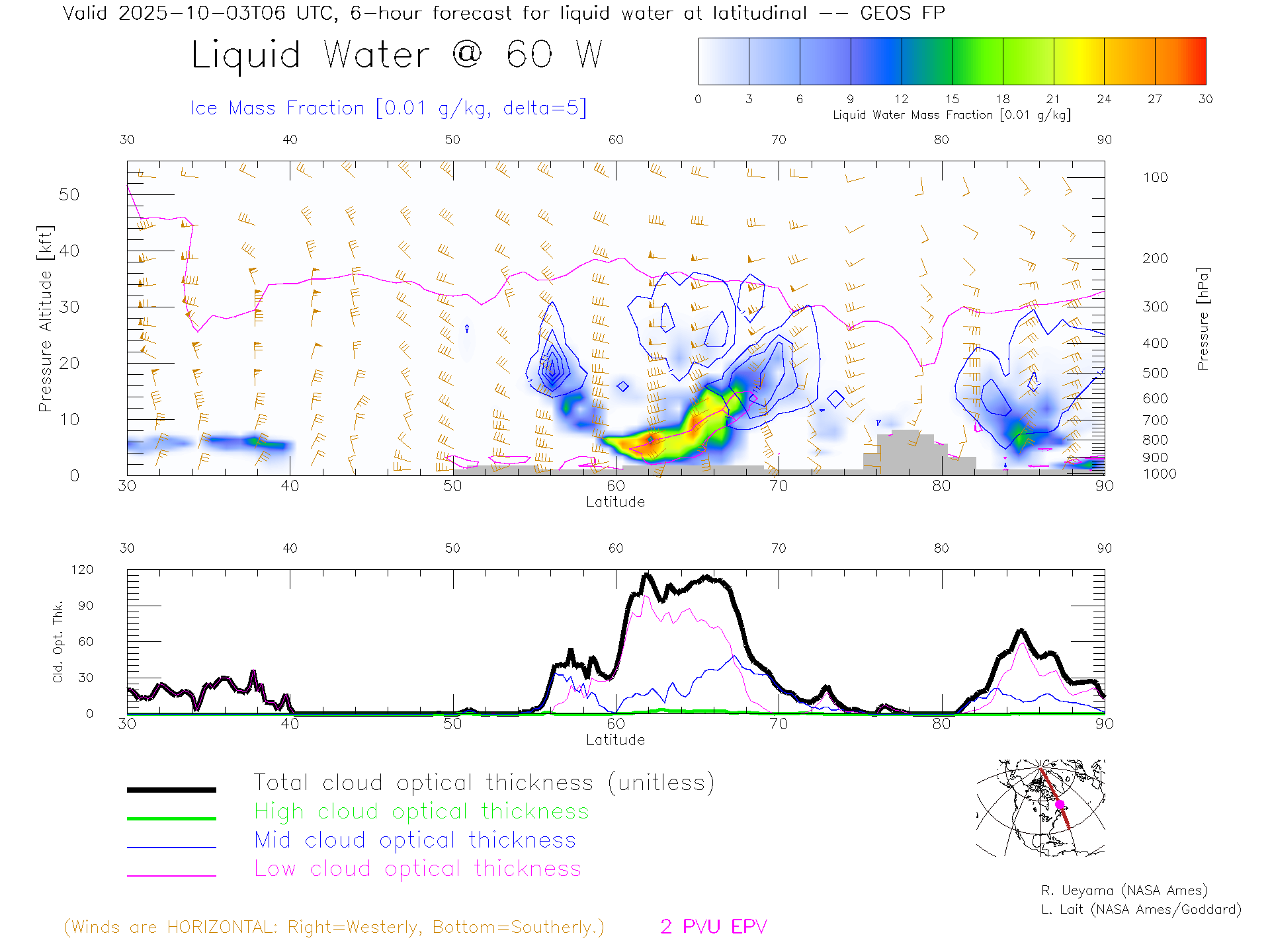 GEOS Forecast Cloud Water Content X-Section (60 W)