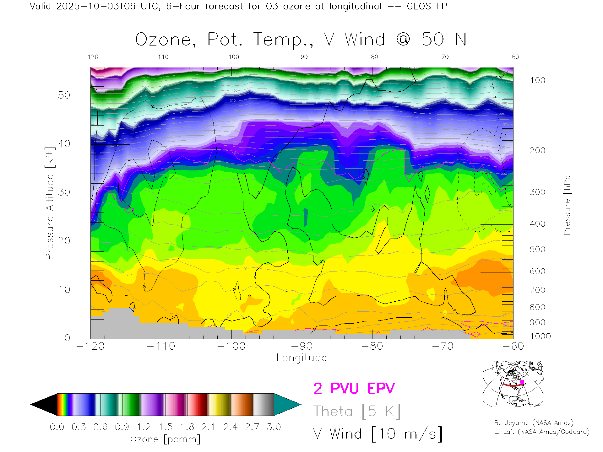 GEOS Forecast Ozone X-Section (50 N)