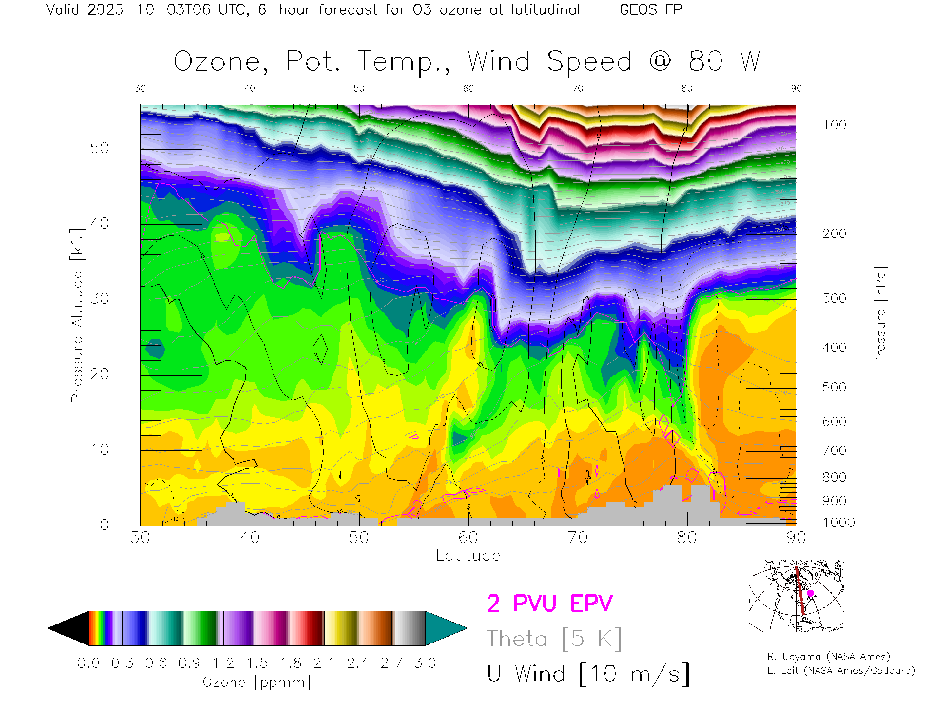 GEOS Forecast Ozone X-Section (80 W)