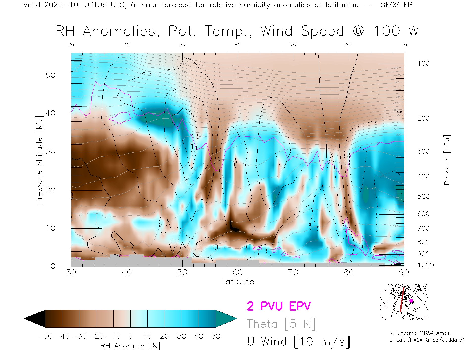 GEOS Forecast Rel. Hum. X-Section (100 W)