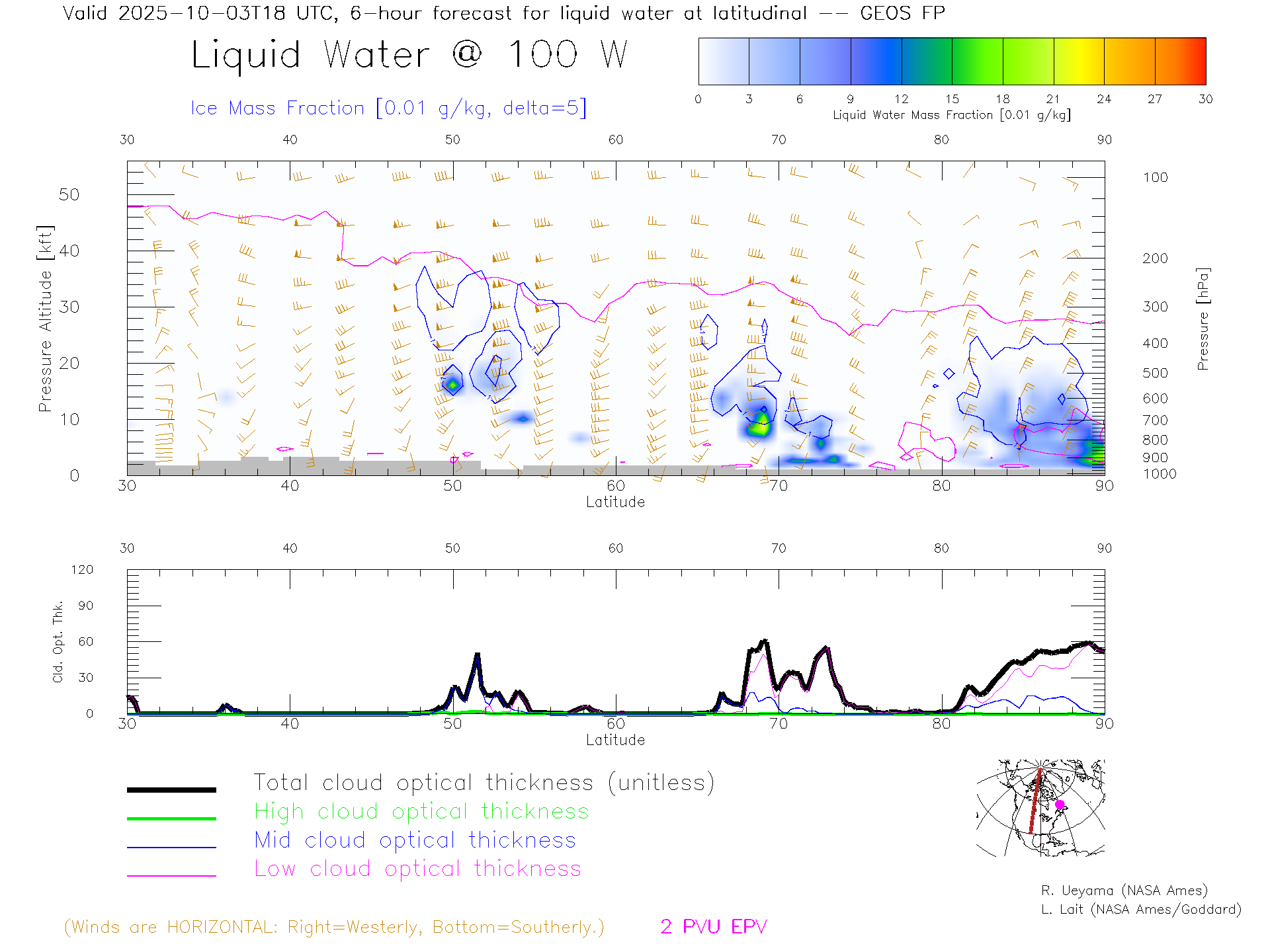 GEOS Forecast Cloud Water Content X-Section (100 W)