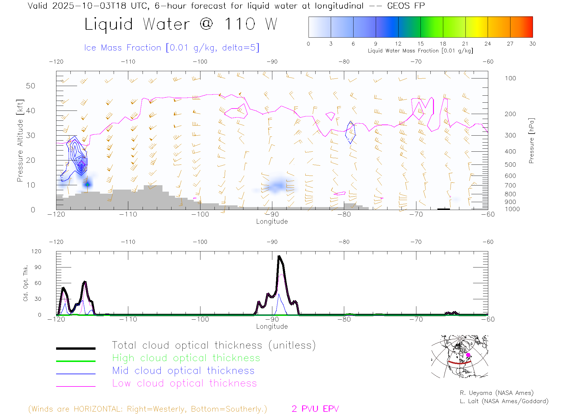 GEOS Forecast Cloud Water Content X-Section (40 N)