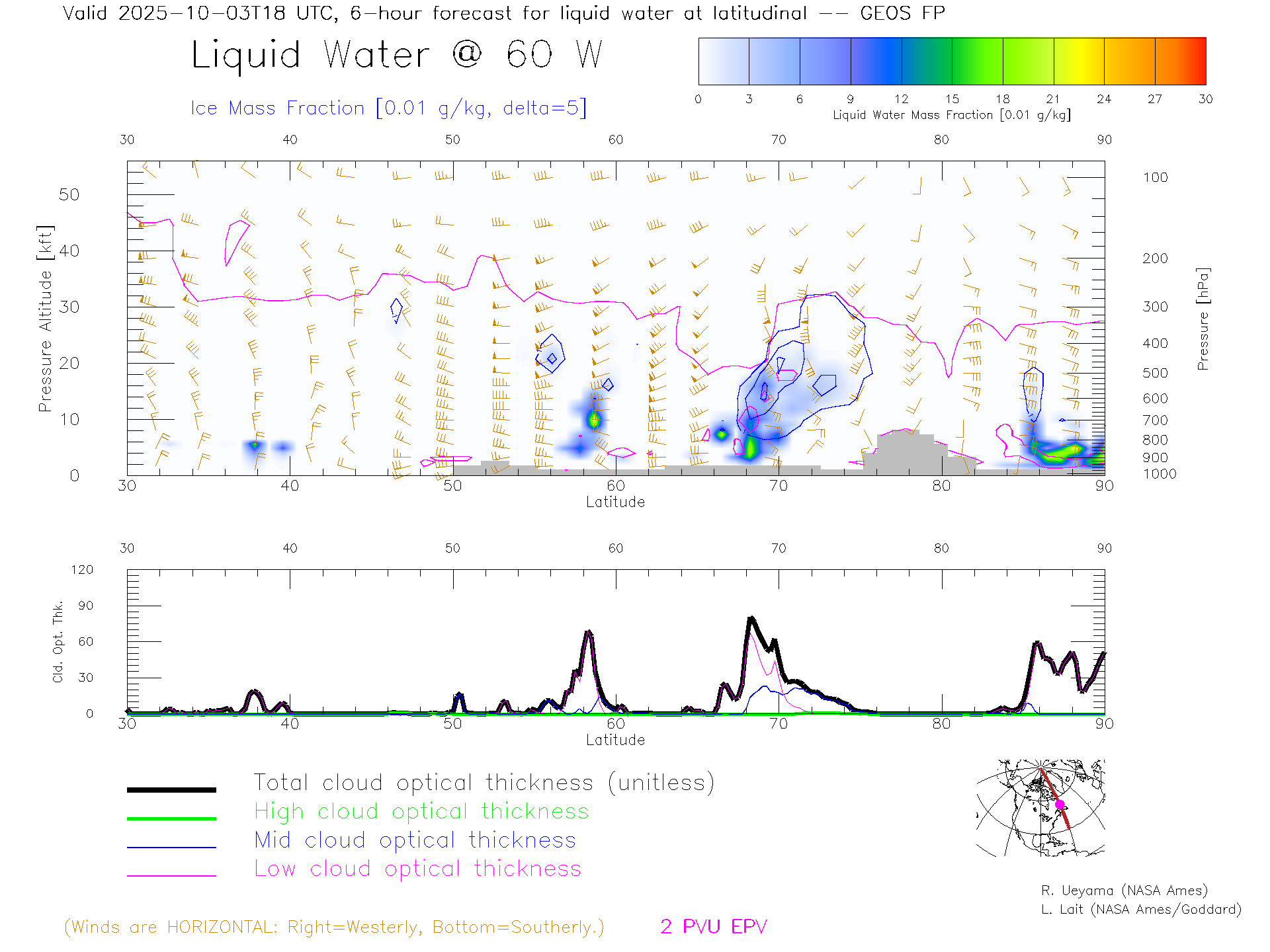 GEOS Forecast Cloud Water Content X-Section (60 W)