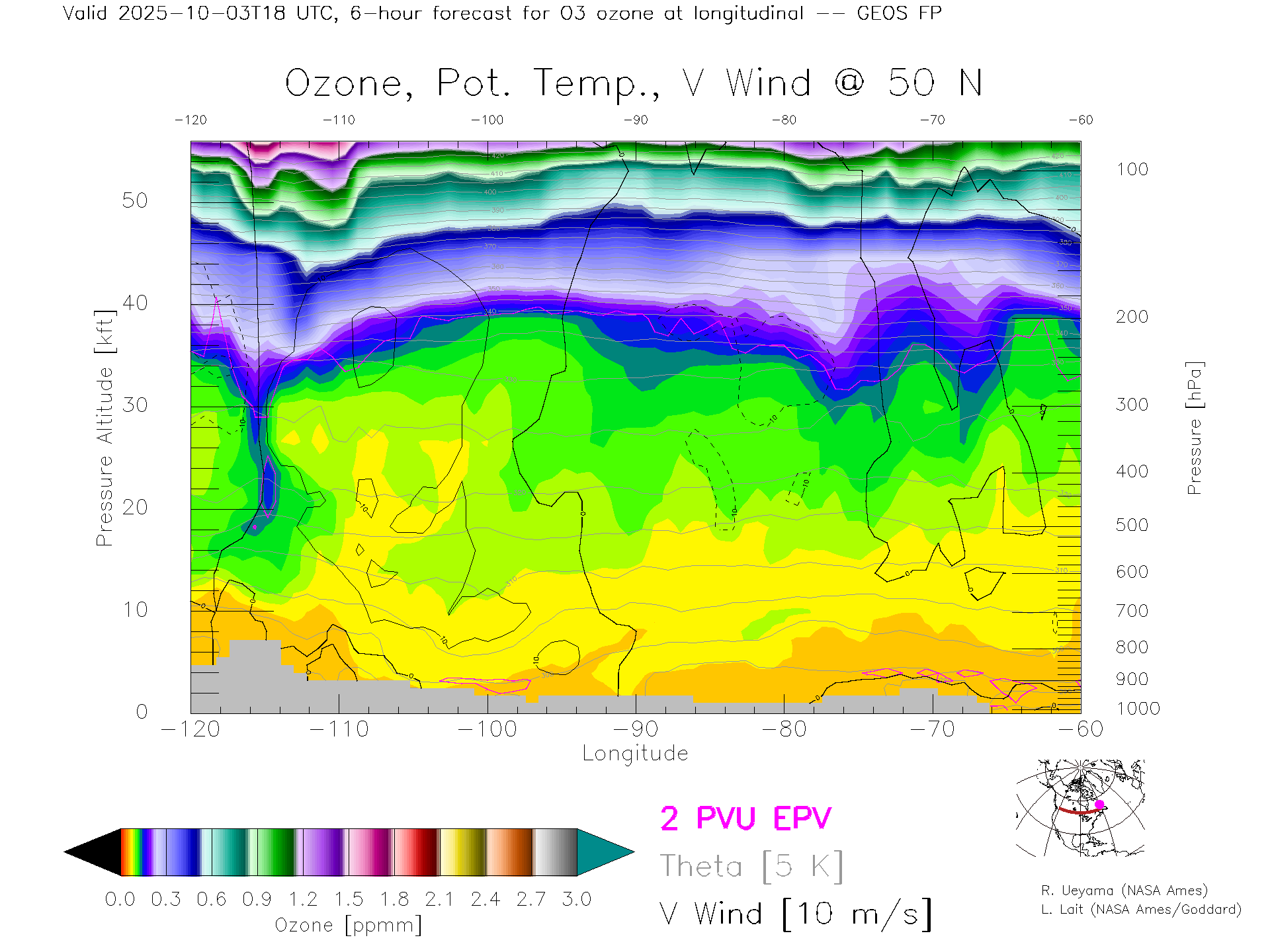 GEOS Forecast Ozone X-Section (50 N)