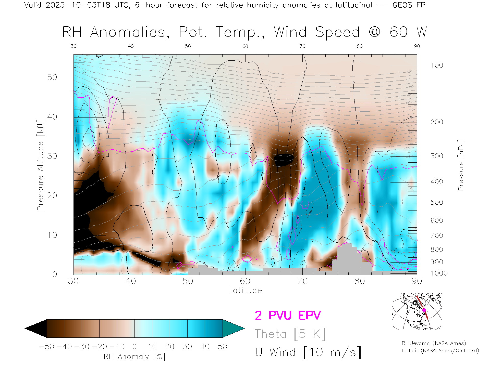 GEOS Forecast Rel. Hum. X-Section (60 W)