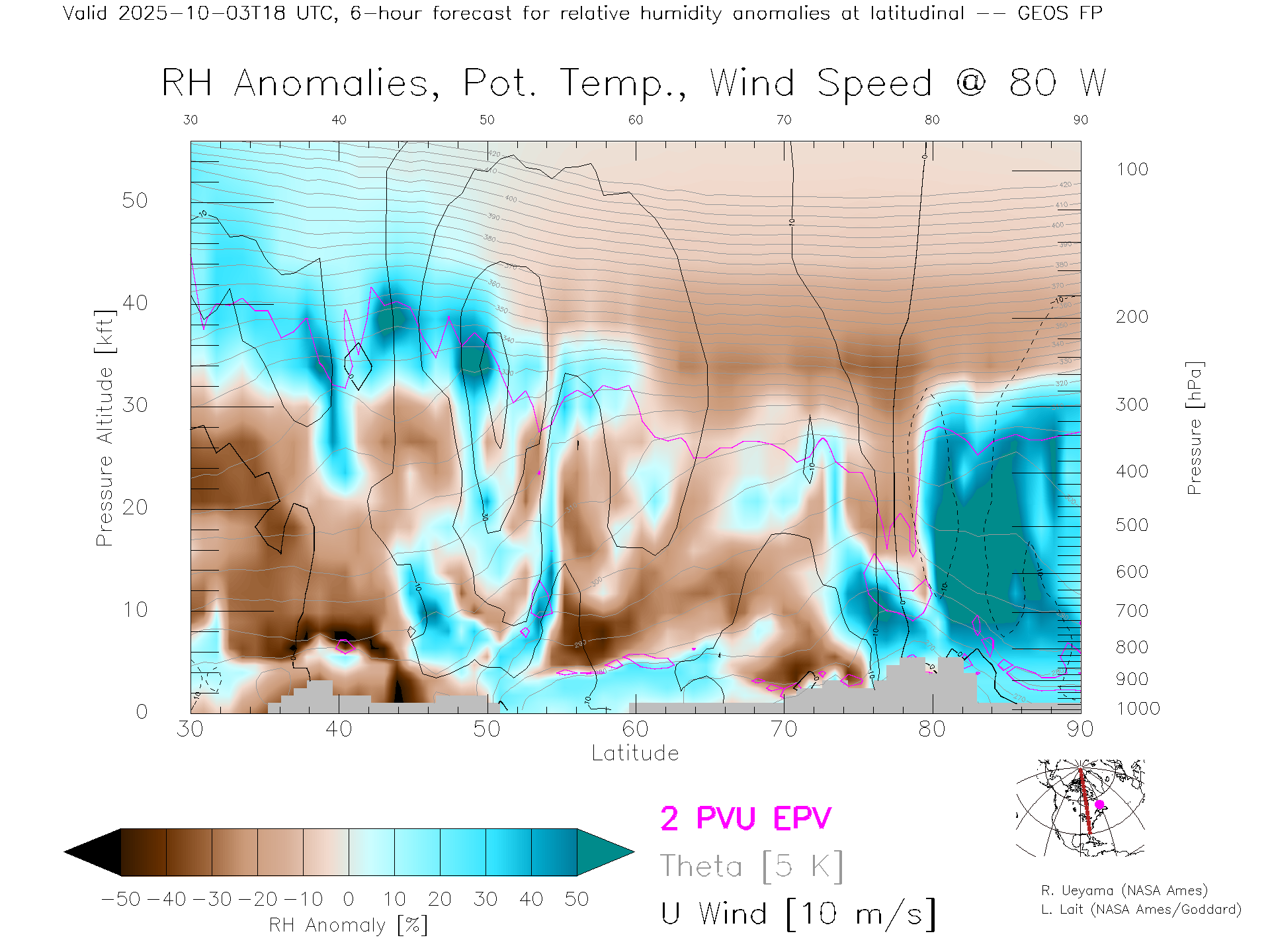 GEOS Forecast Rel. Hum. X-Section (80 W)