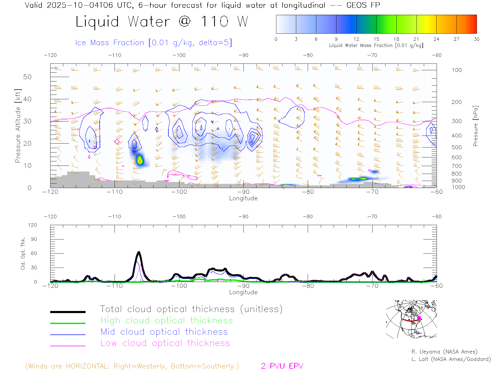 GEOS Forecast Cloud Water Content X-Section (50 N)