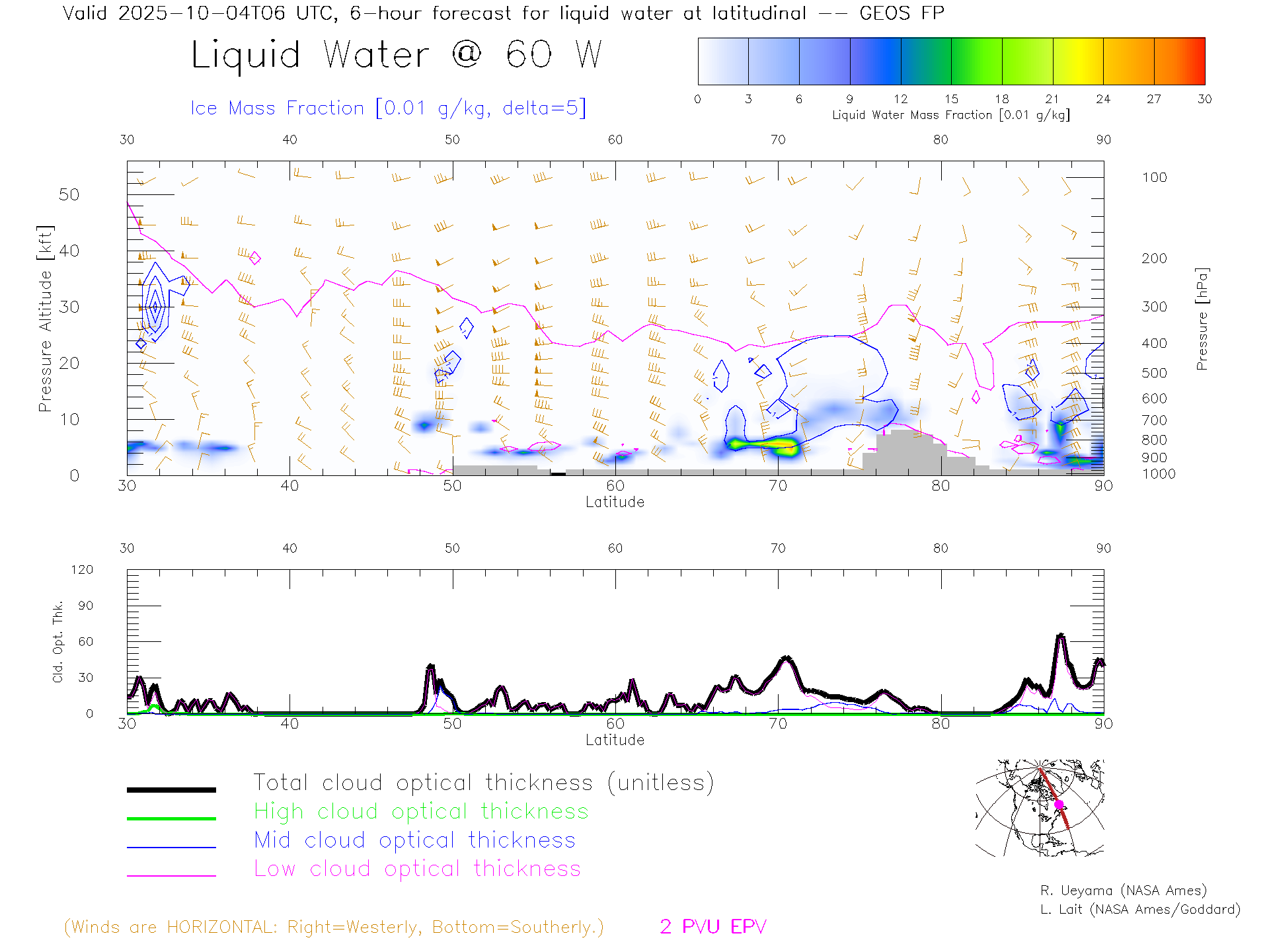 GEOS Forecast Cloud Water Content X-Section (60 W)