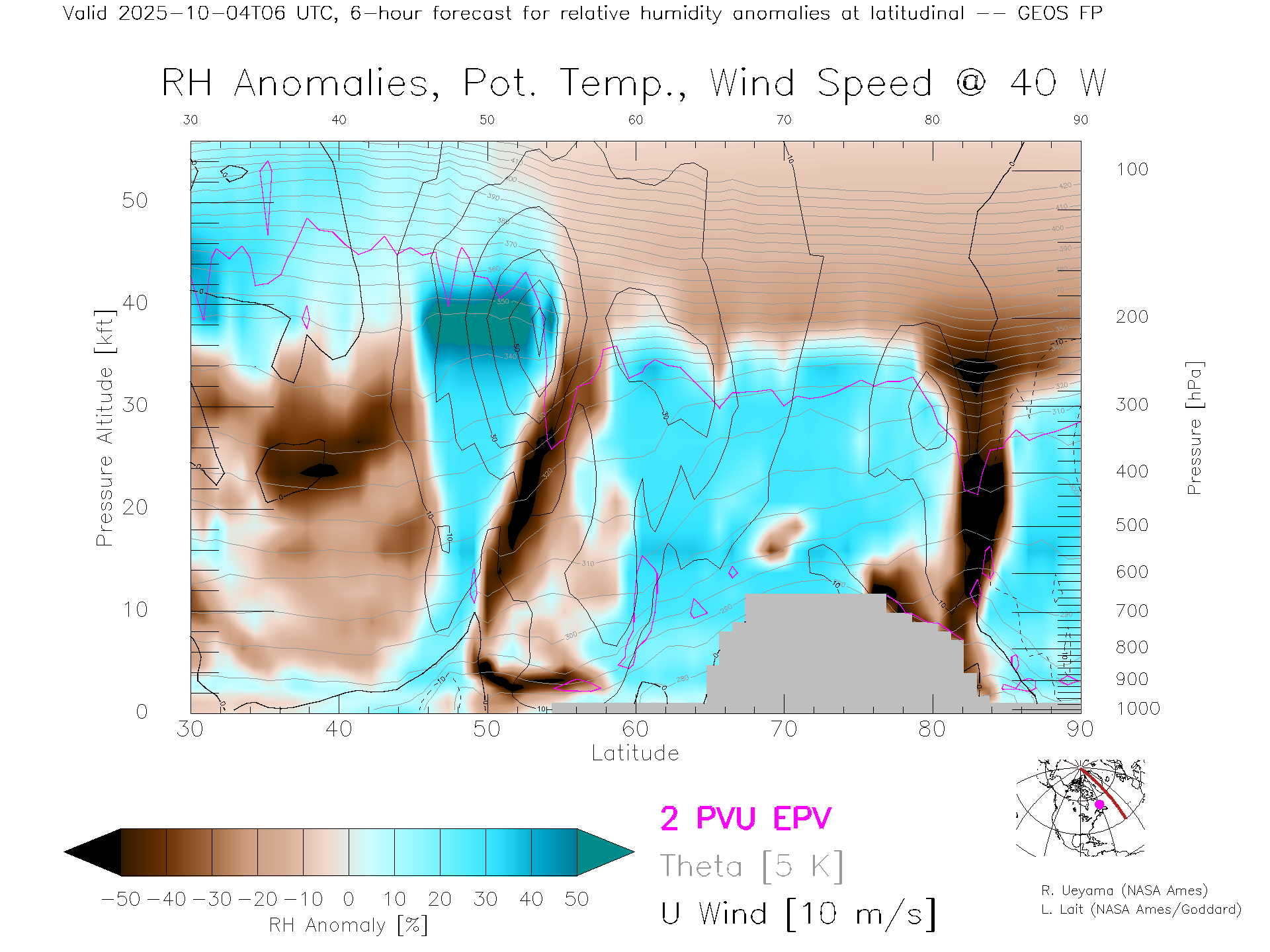 GEOS Forecast Rel. Hum. X-Section (40 W)