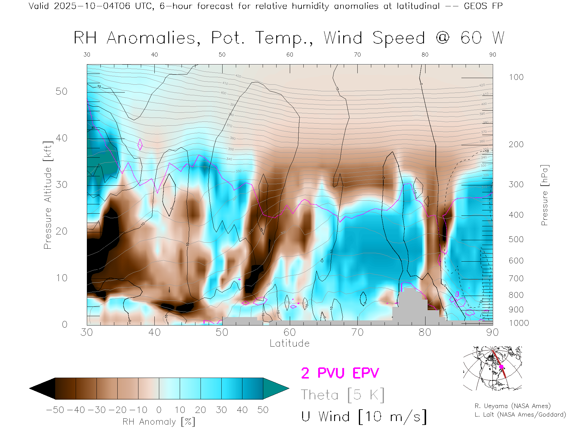 GEOS Forecast Rel. Hum. X-Section (60 W)