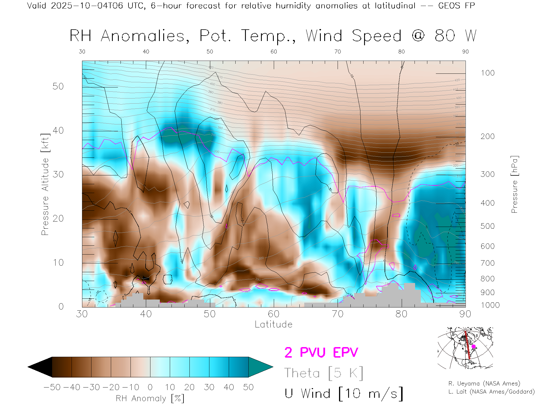GEOS Forecast Rel. Hum. X-Section (80 W)