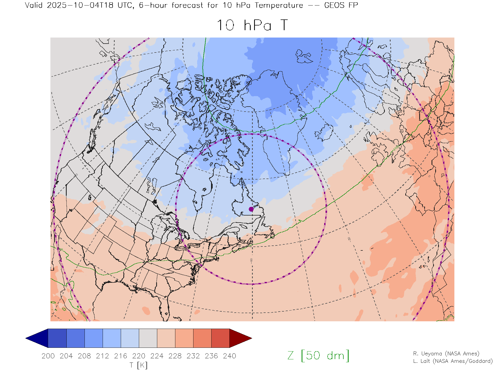 GEOS Forecast 10 hPa Temp.