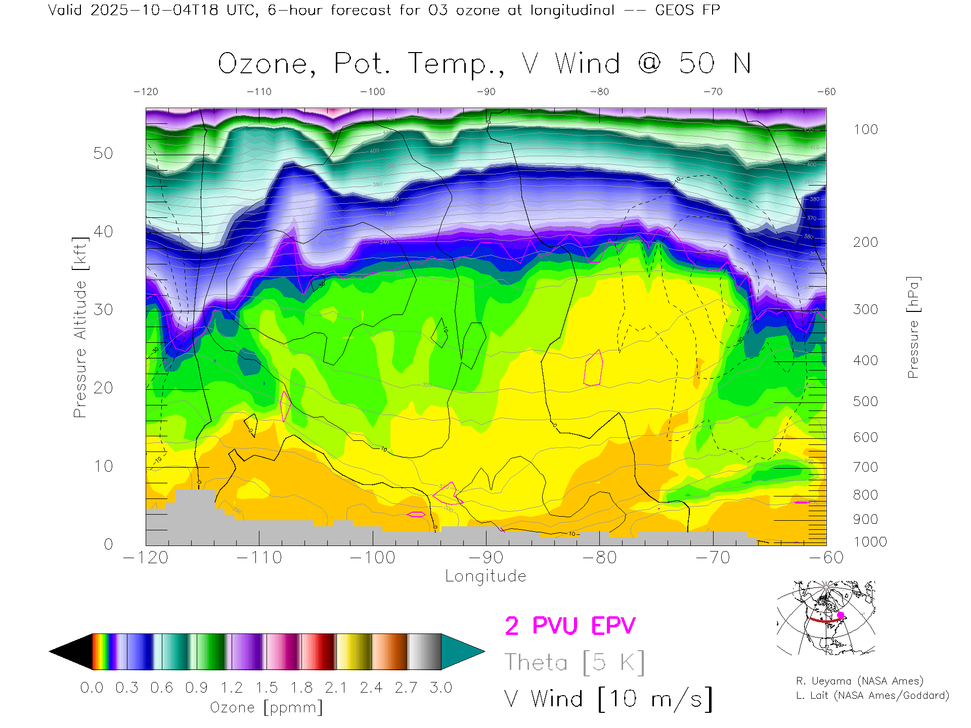GEOS Forecast Ozone X-Section (50 N)
