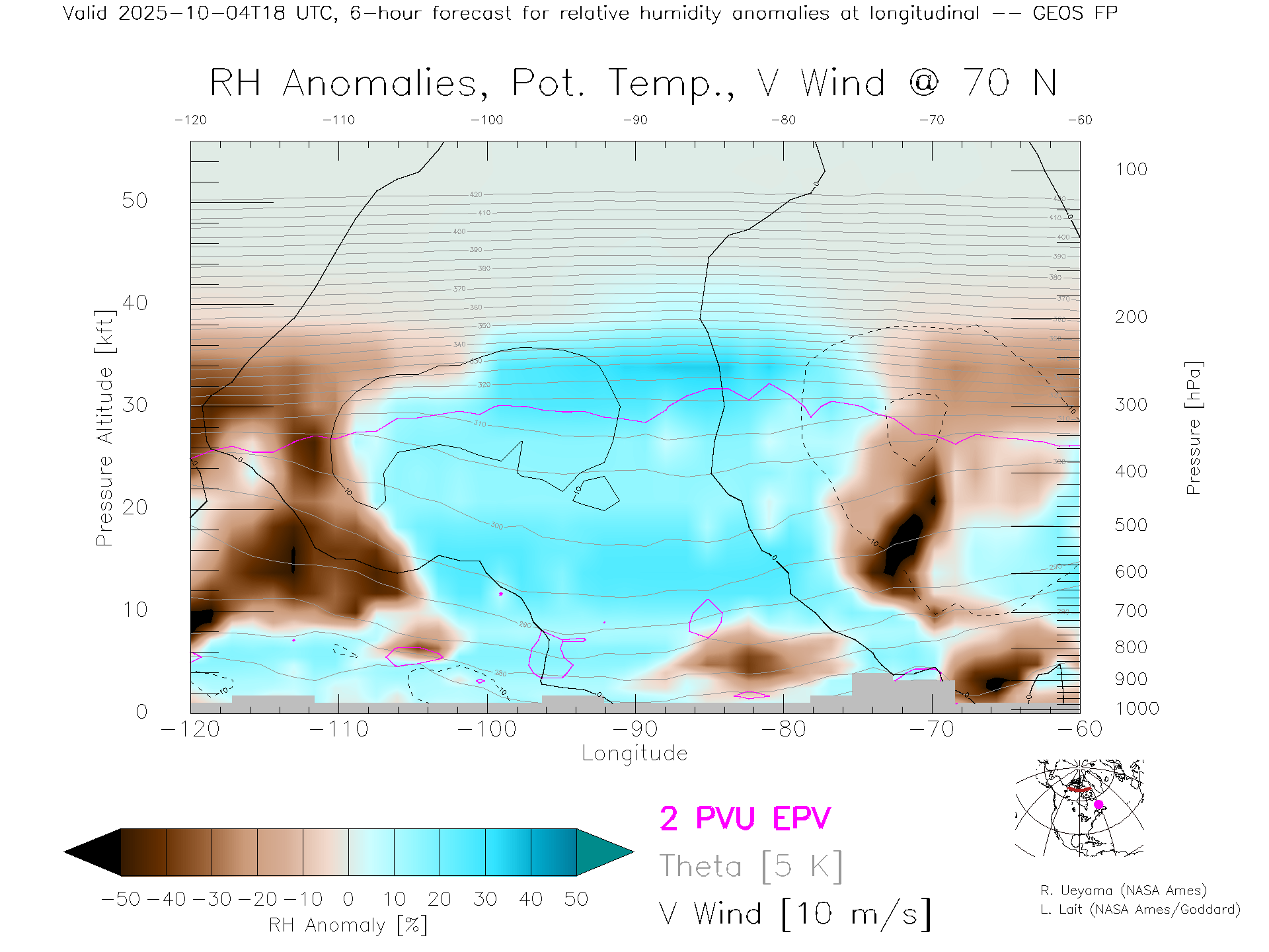 GEOS Forecast Rel. Hum. X-Section (70 N)
