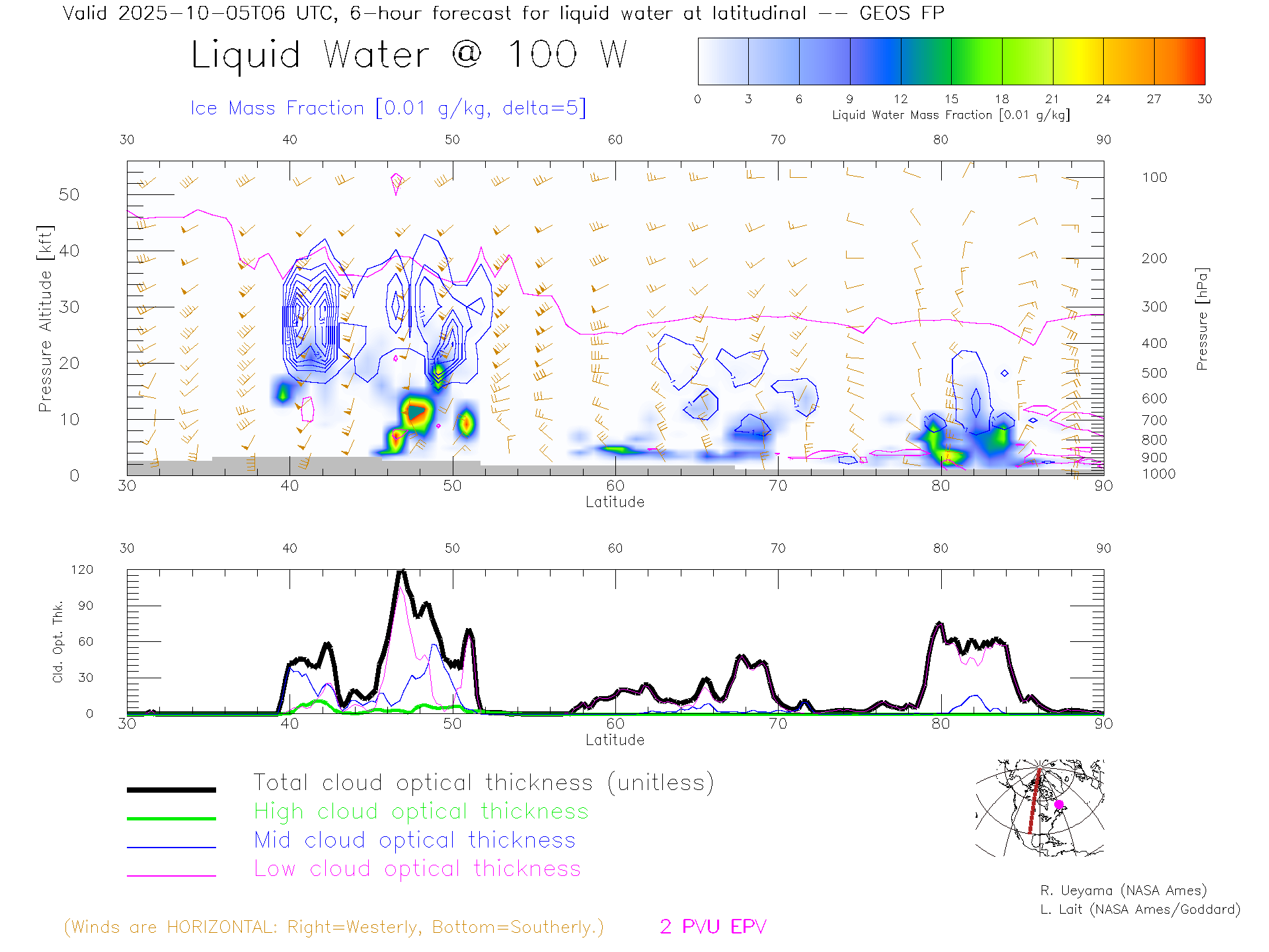 GEOS Forecast Cloud Water Content X-Section (100 W)