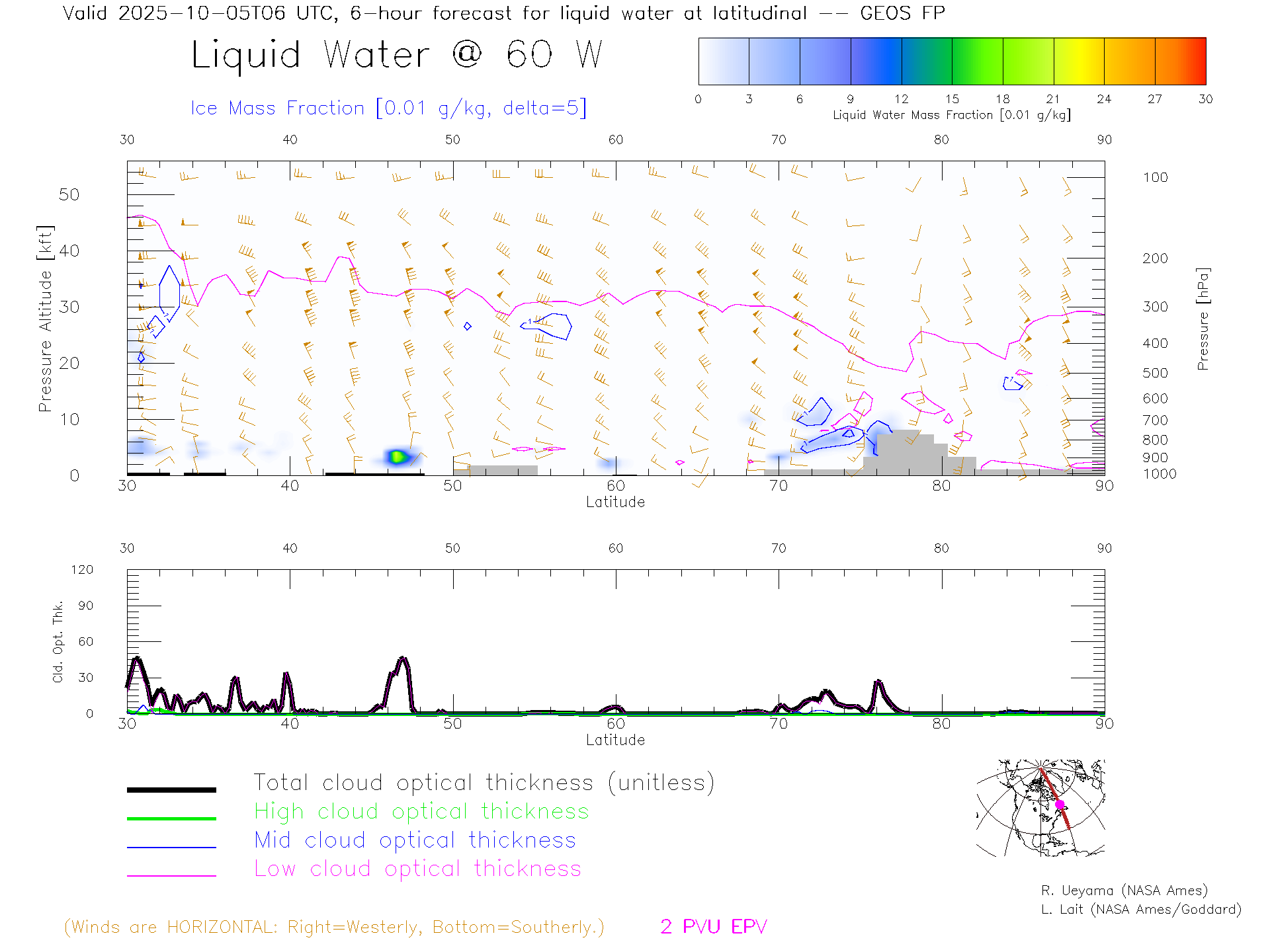 GEOS Forecast Cloud Water Content X-Section (60 W)