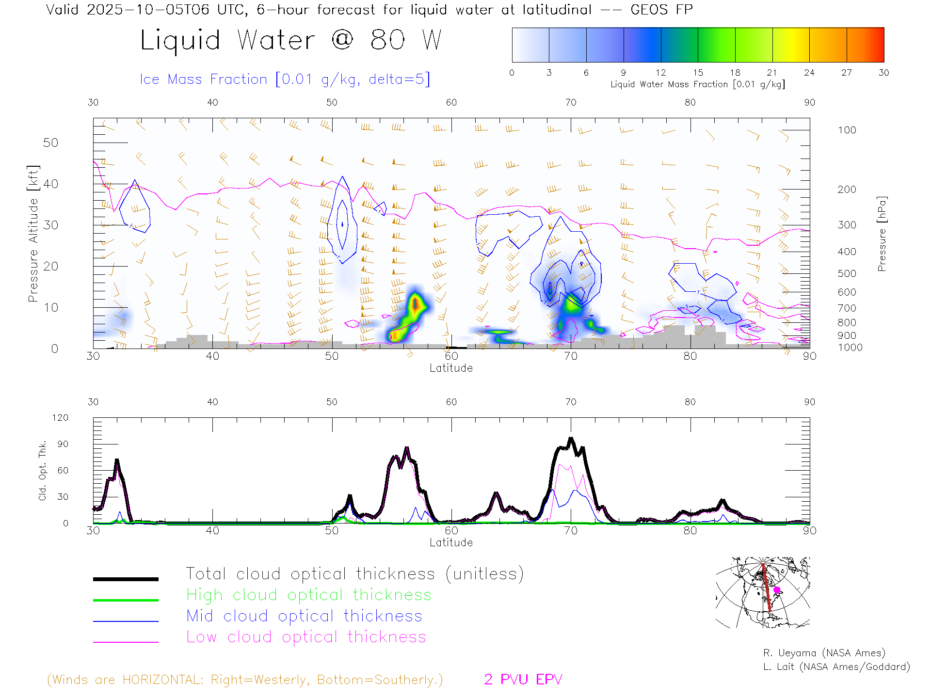 GEOS Forecast Cloud Water Content X-Section (80 W)