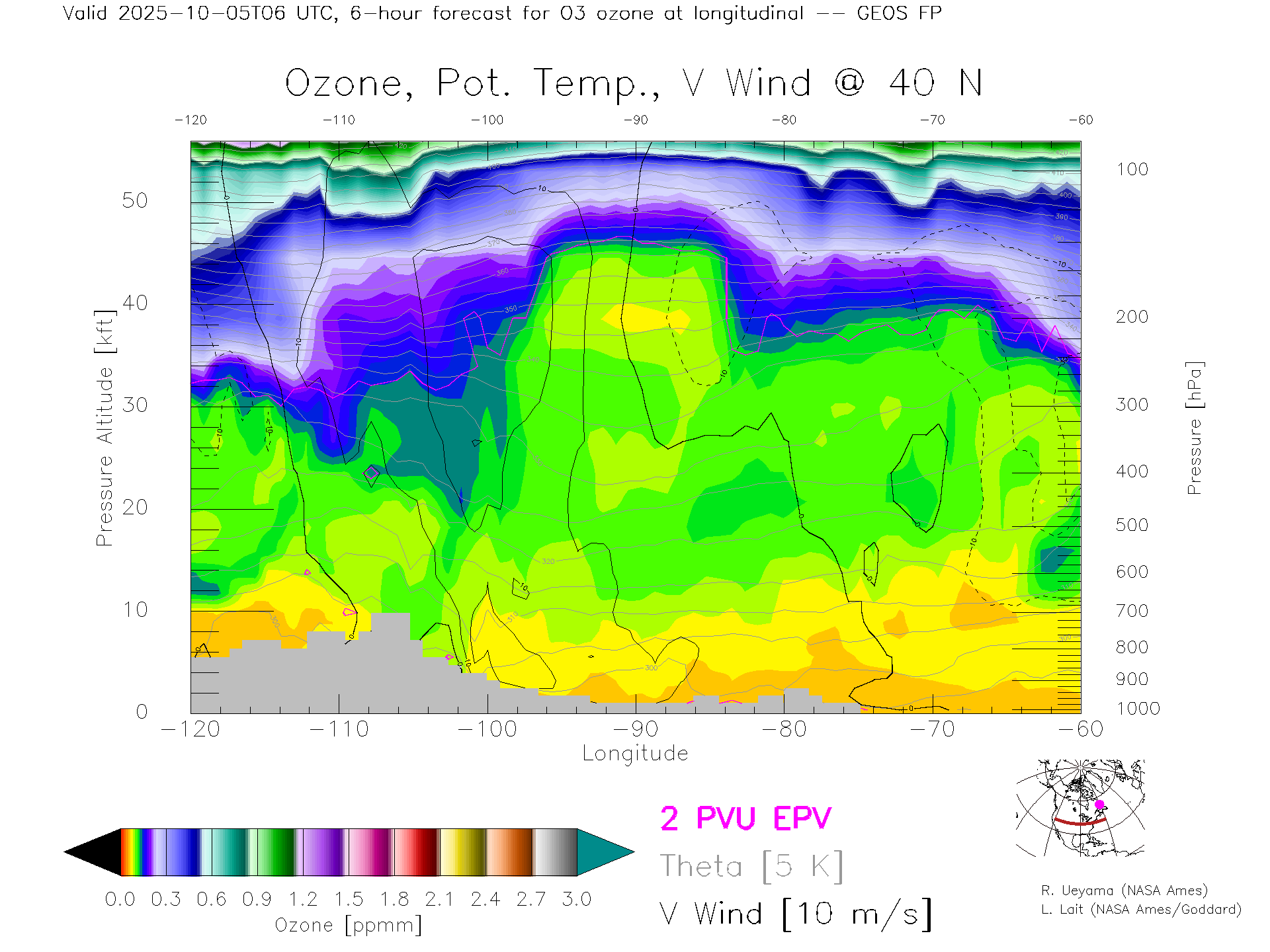 GEOS Forecast Ozone X-Section (40 N)