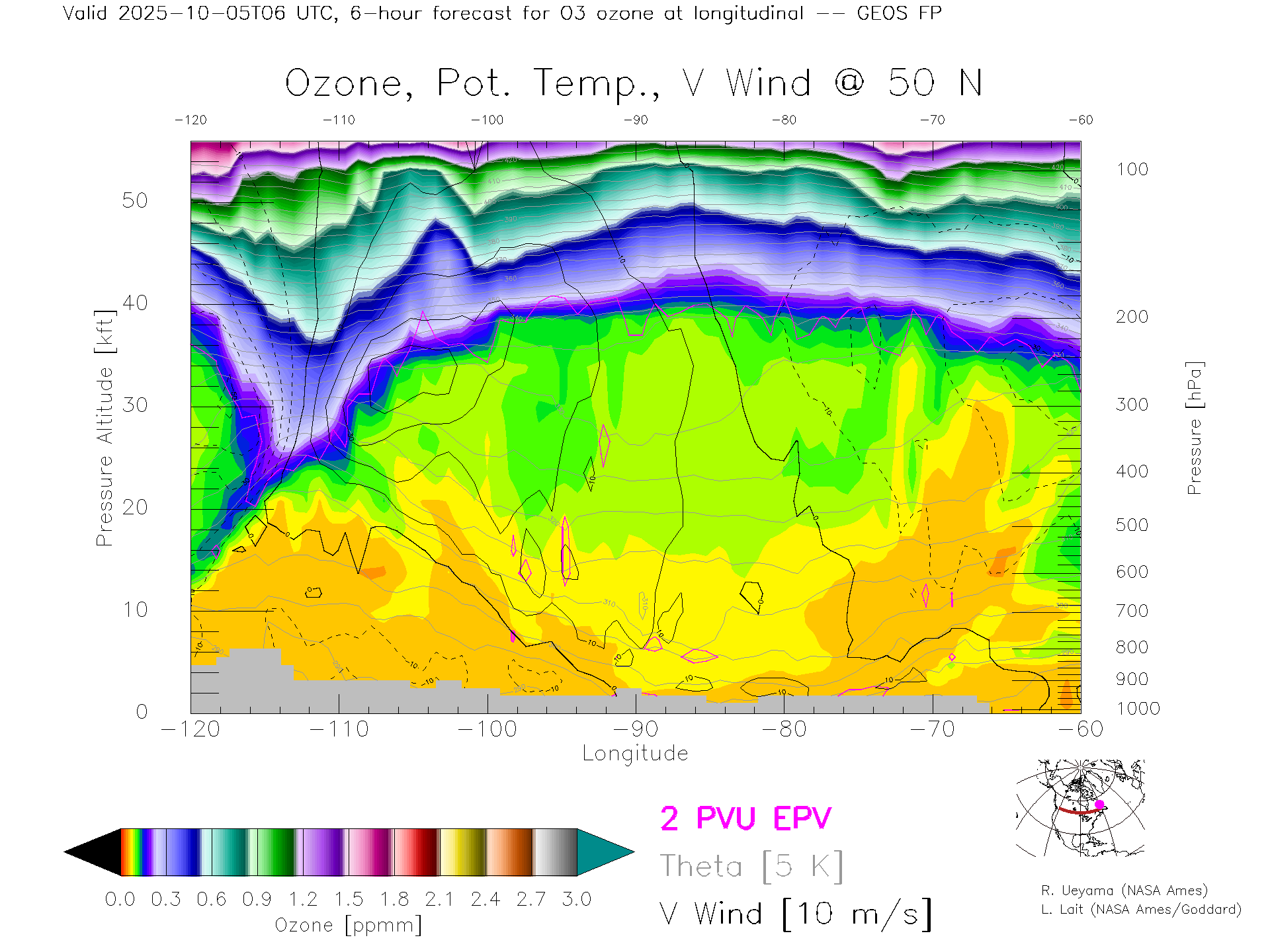 GEOS Forecast Ozone X-Section (50 N)