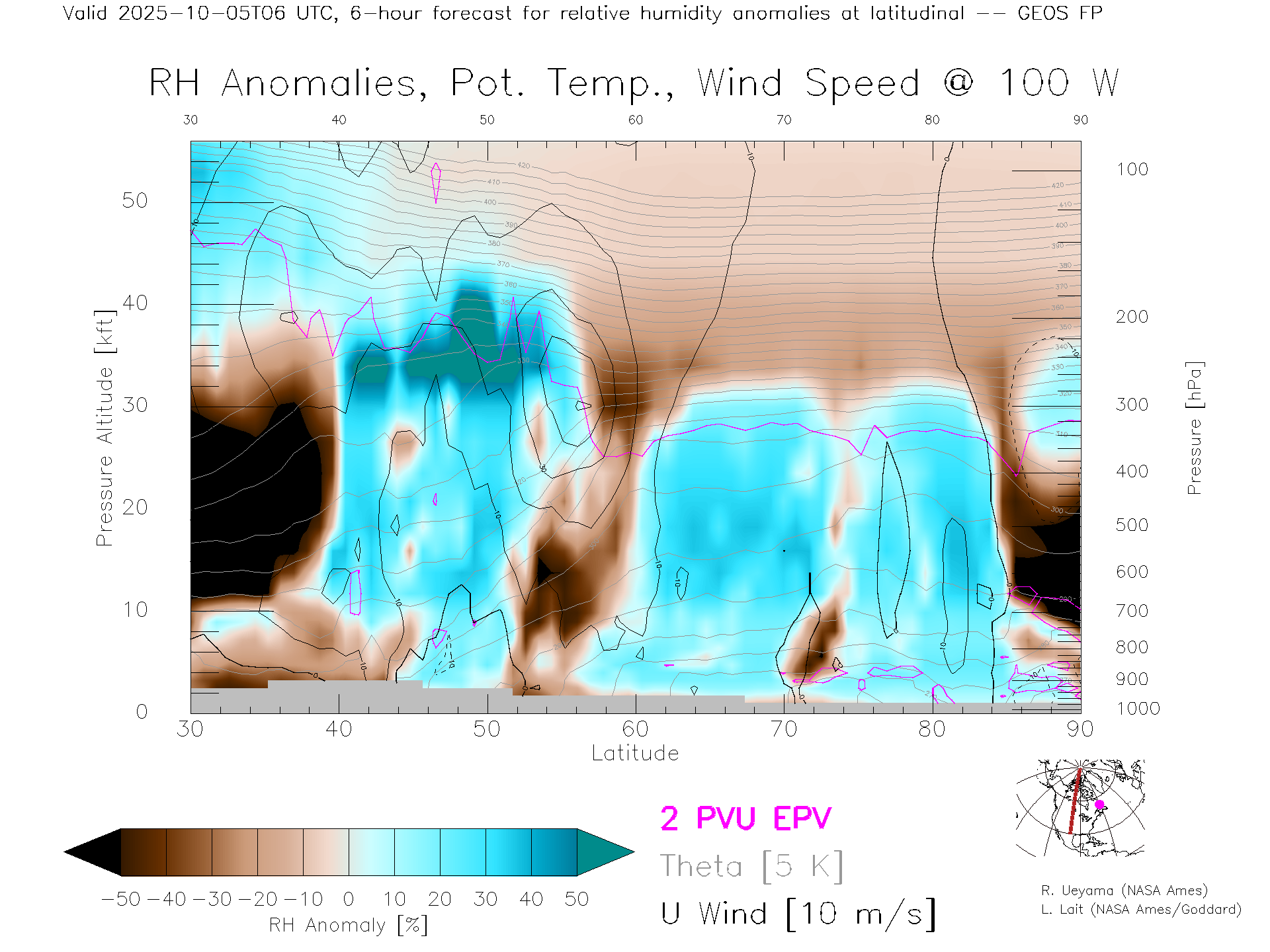 GEOS Forecast Rel. Hum. X-Section (100 W)