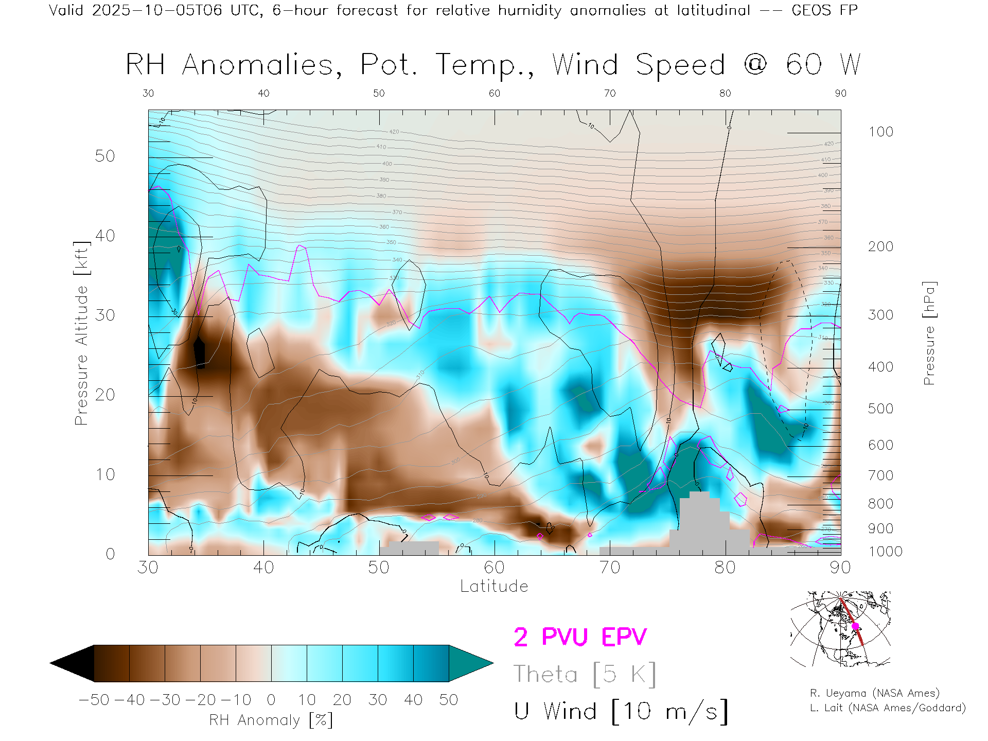 GEOS Forecast Rel. Hum. X-Section (60 W)