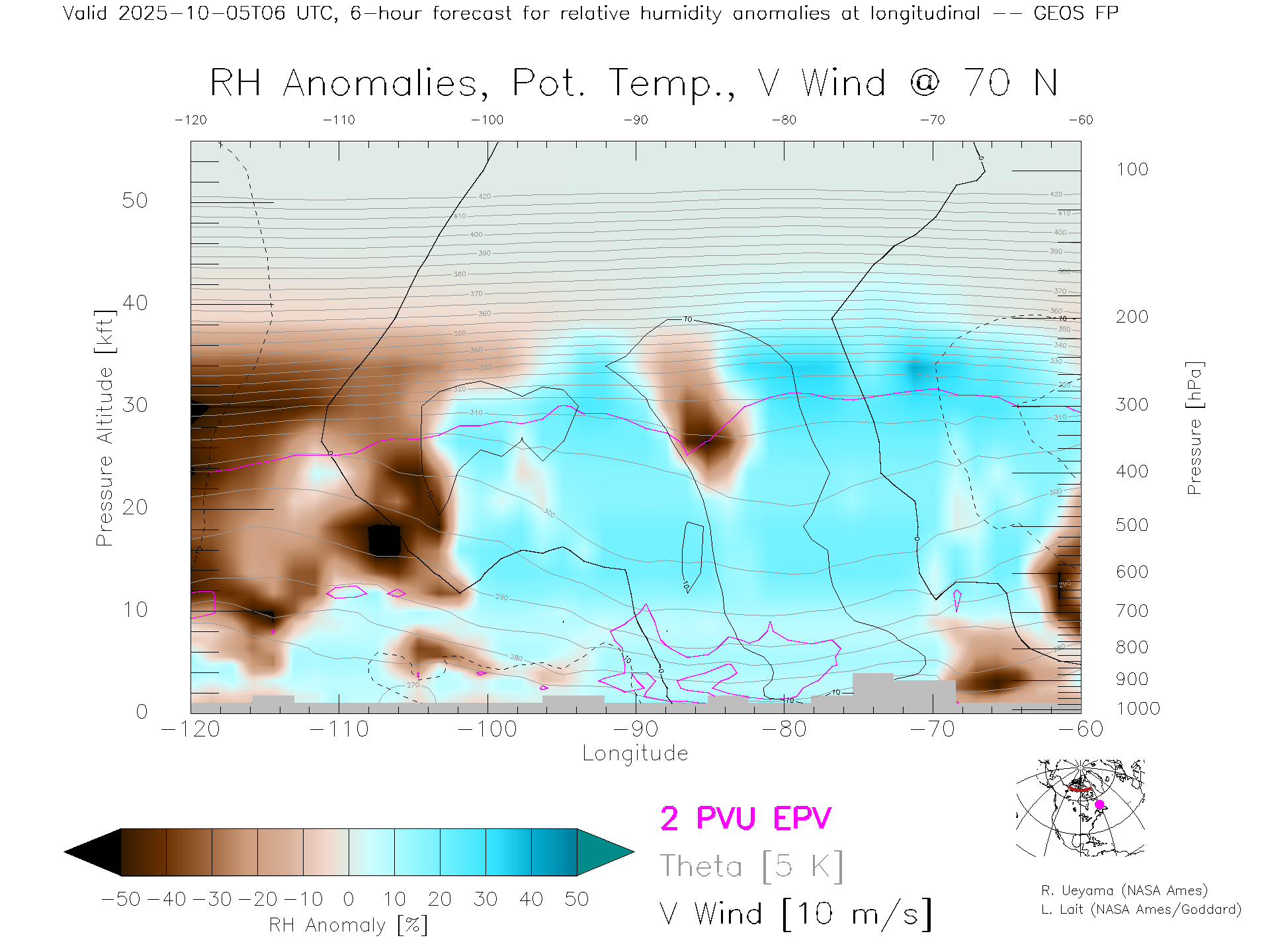 GEOS Forecast Rel. Hum. X-Section (70 N)
