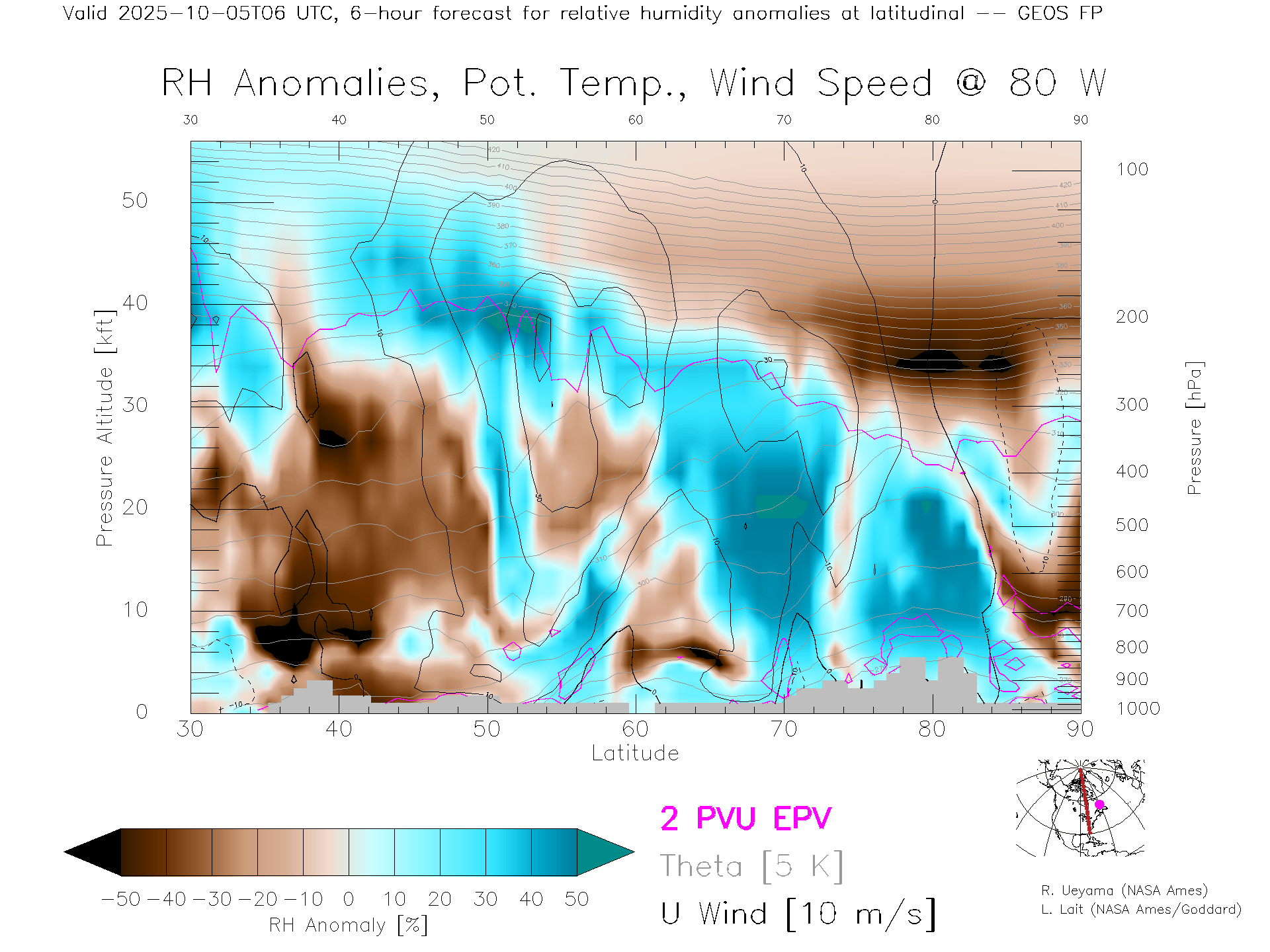GEOS Forecast Rel. Hum. X-Section (80 W)