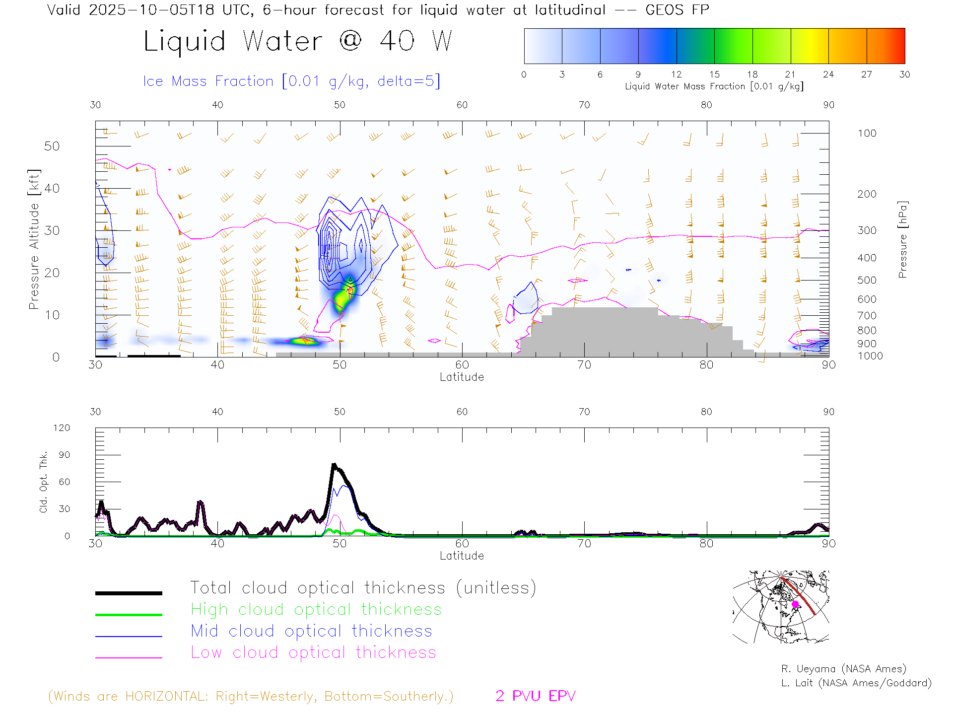 GEOS Forecast Cloud Water Content X-Section (40 W)