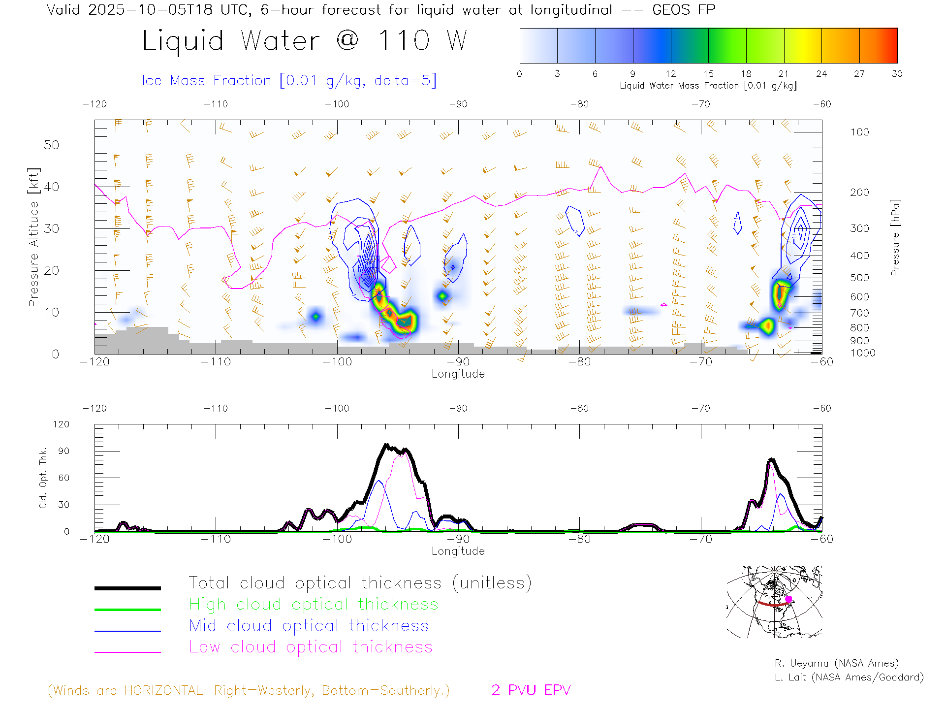 GEOS Forecast Cloud Water Content X-Section (50 N)