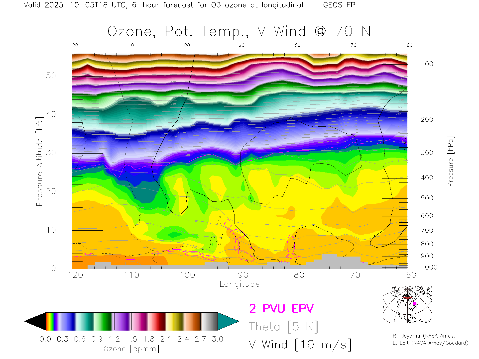 GEOS Forecast Ozone X-Section (70 N)