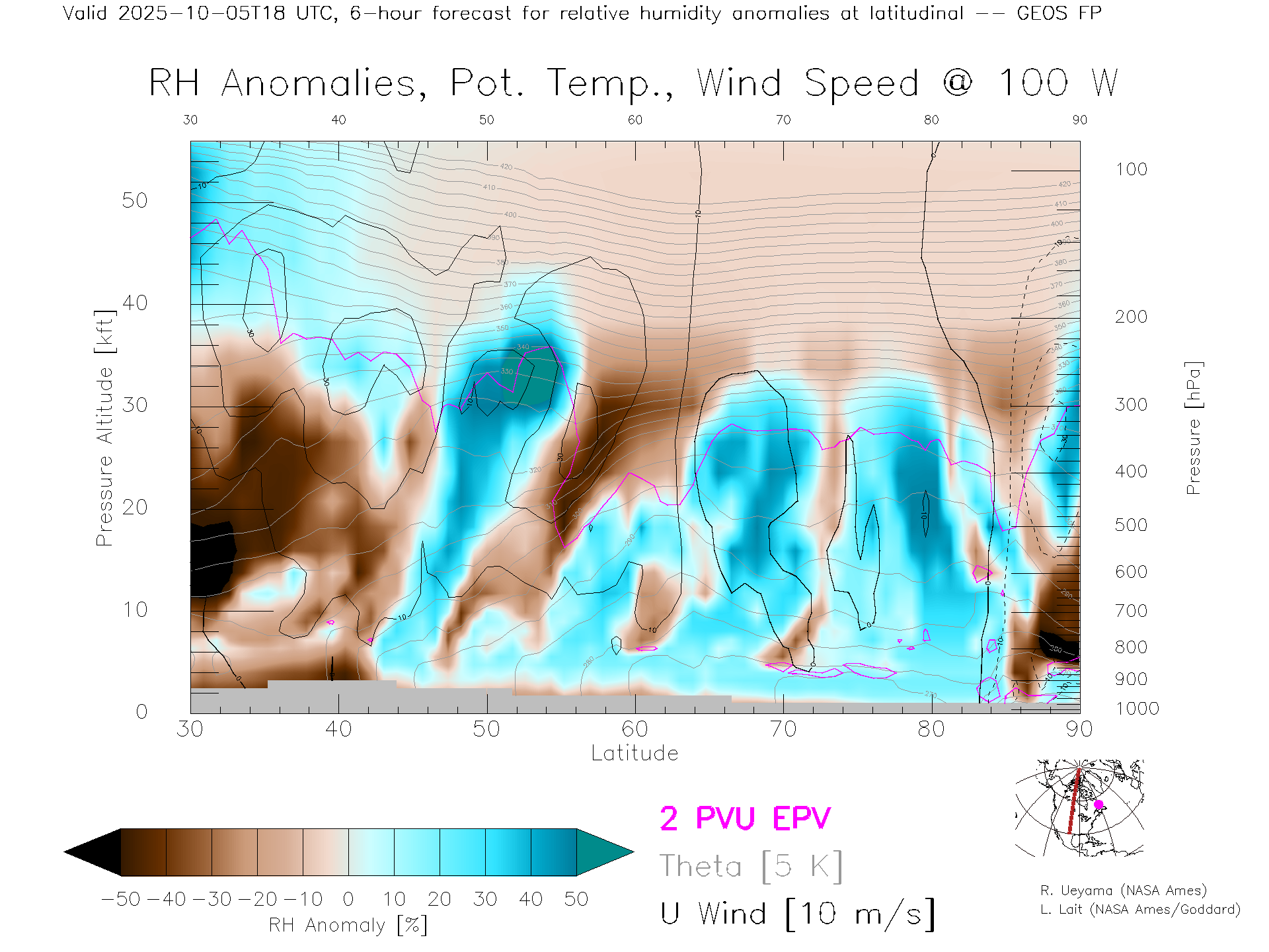 GEOS Forecast Rel. Hum. X-Section (100 W)