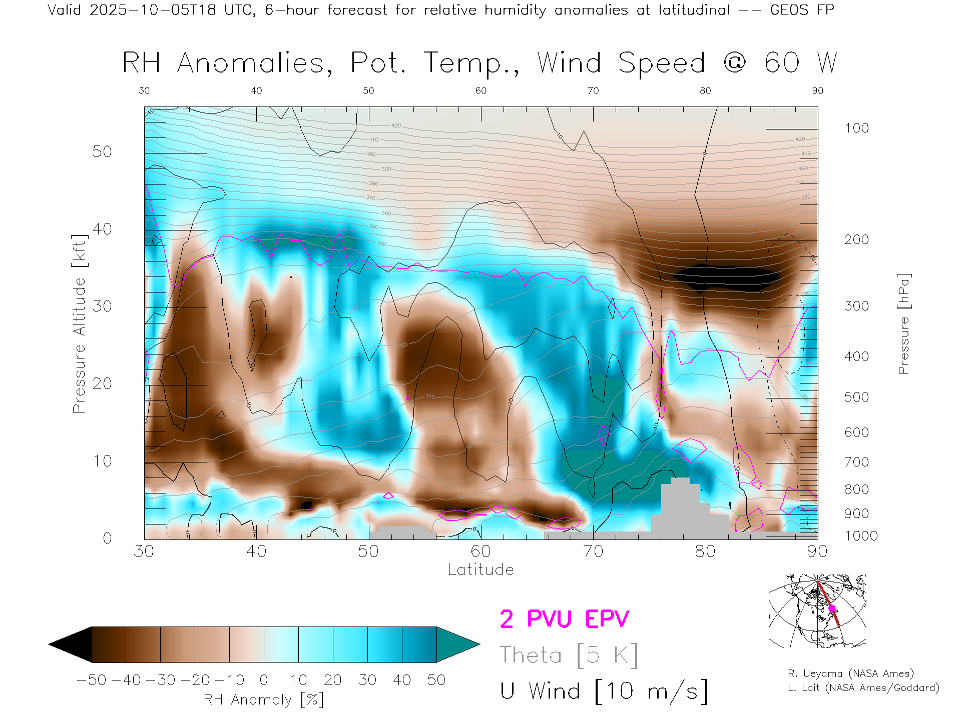 GEOS Forecast Rel. Hum. X-Section (60 W)
