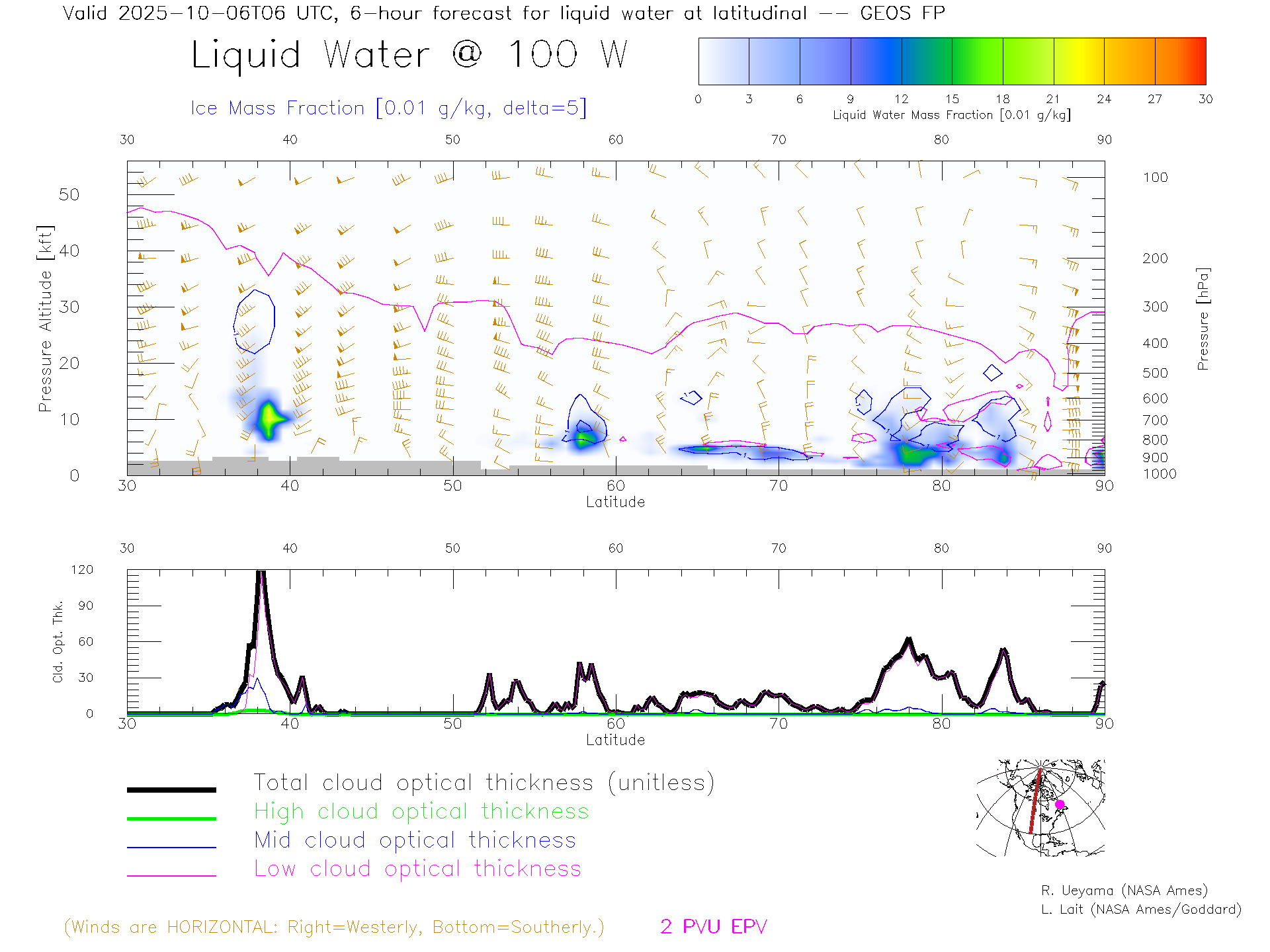 GEOS Forecast Cloud Water Content X-Section (100 W)