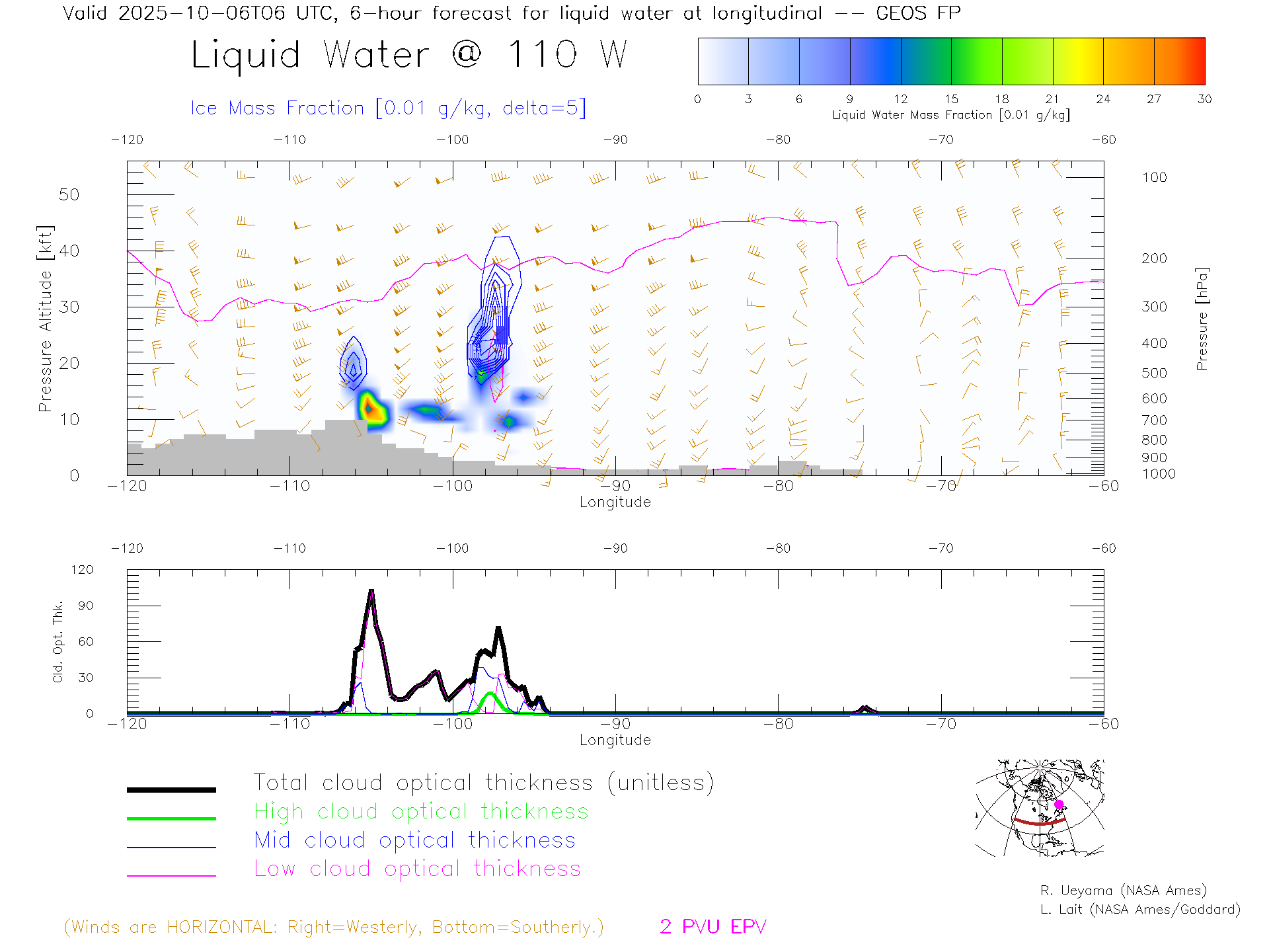 GEOS Forecast Cloud Water Content X-Section (40 N)
