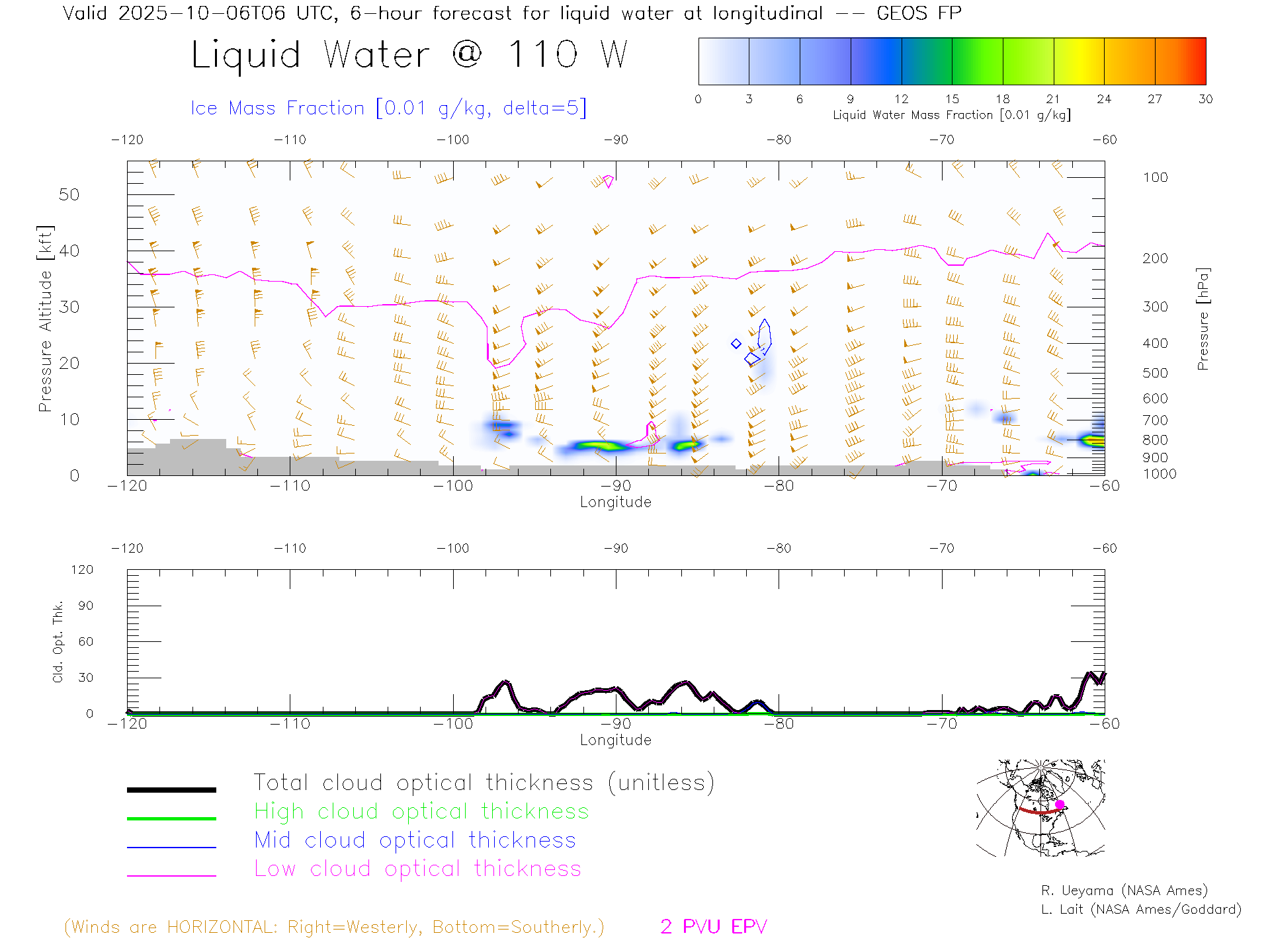 GEOS Forecast Cloud Water Content X-Section (50 N)