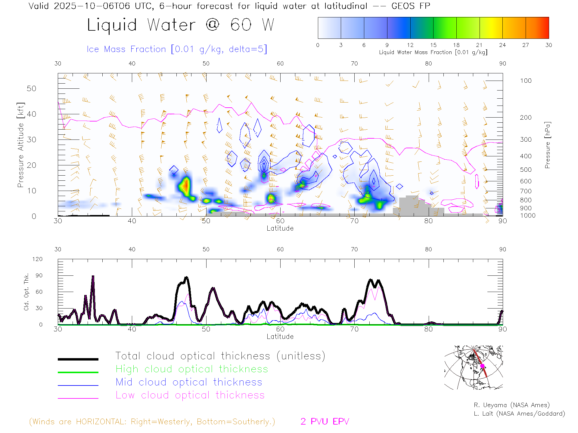 GEOS Forecast Cloud Water Content X-Section (60 W)