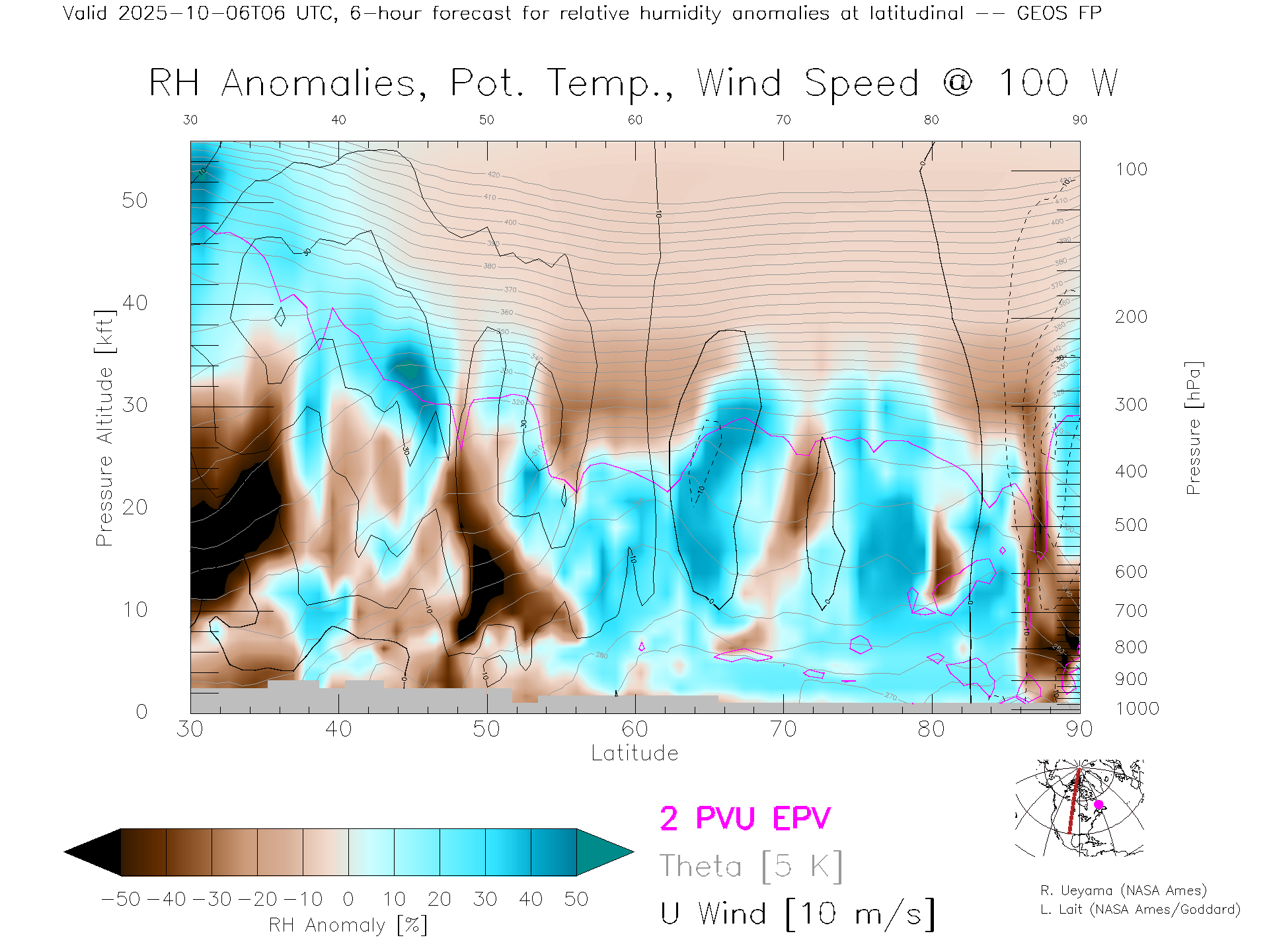 GEOS Forecast Rel. Hum. X-Section (100 W)