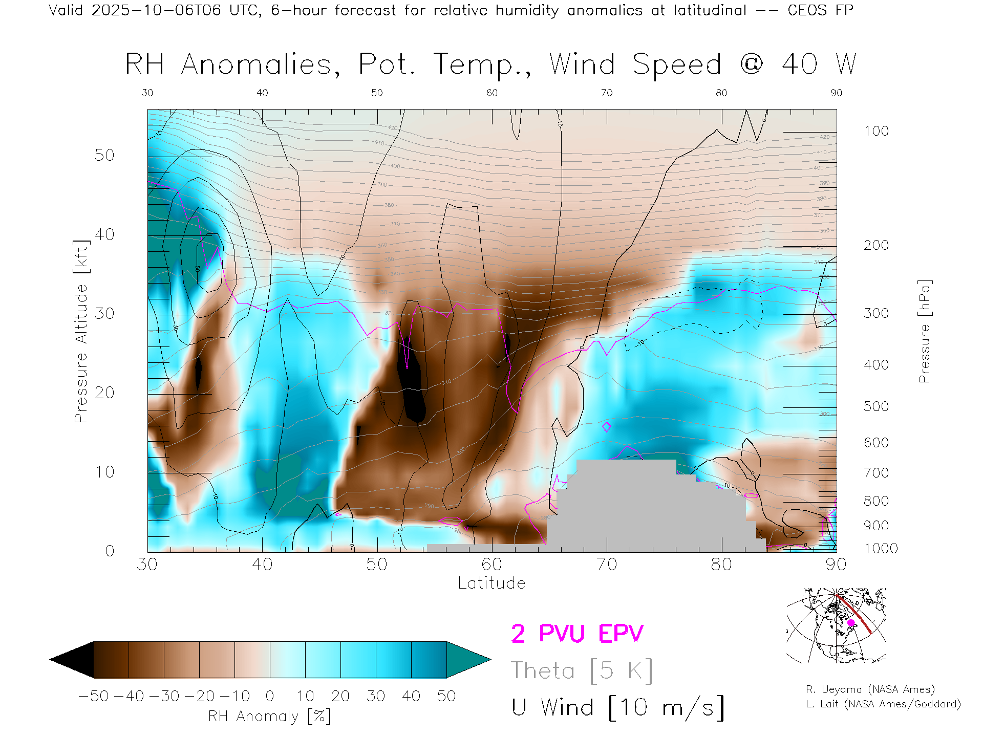 GEOS Forecast Rel. Hum. X-Section (40 W)